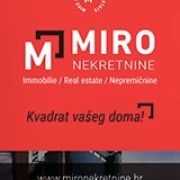 MIRO NEKRETNINE d.o.o. - agencija za nekretnine U agenciji MIRO NEKRETNINE d.o.o. dočekat će Vas Miro, srdačan i profesionalan posrednik koji je nakon višegodišnjeg iskustva u poslovanju s nekretninama u raznim agencijama (20 god.), odlučio okupiti vlastiti tim profesionalaca koji će biti potpuno posvećeni želji da svojim klijentima pruže što kvalitetniju uslugu. Kod nas ćete naići na toplu i prijateljsku atmosferu, skoro pa i obiteljsku, gdje ćemo s vama popričati o vašim željama, potrebama i mogućnostima. Pomno vas saslušati a onda za vas predložiti ono što mislimo, da bi iz našeg iskustva, najbliže odgovaralo vašem opisu i da bi bilo najbolje za vas. Bez brige, znamo i na što treba pripaziti i upozorit ćemo vas i ako nečega ni sami niste svjesni. Prodiskutirati ćemo dobre i loše strane nekretnine, pokazati vam njenu pravnu stranu te obići nekretninu. U svakom slučaju sve pojedinosti oko usluga koje vršimo možete pronaći u našim Općim uvjetima poslovanja (bilo na prethodnoj poveznici bilo u našoj poslovnici). Voljeli bismo naglasiti i to da svim klijentima pristupamo sa jednakom pažnjom jer nam je bitno da svaki nađe ono što mu najviše odgovara i da je na kraju zadovoljan a to je ujedno i nagrada za naš trud. Sreća kupca je i naša sreća! Što se tiče područja rada, specijalizirani smo za otok Krk i Crikveničku rivijeru jer na njemu imamo najviše iskustva pa klijentima možemo biti najviše od pomoći. I još bismo naglasili da radimo ovaj posao iz “gušta”, jer to volimo, a uz zadovoljnog kupca to su naši najveći pokretači. Stoga, ako ste u potrazi za pouzdanim partnerom s iskustvom, velikim entuzijazmom i ljubavlju prema onome što radi, onda ste došli na pravo mjesto. Posjetite nas i pronađite kvadrat vašeg doma!