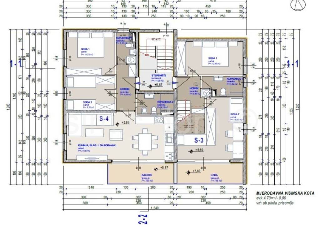 Wohnungen zum Verkauf in äußerst attraktiver Lage in Kastela, in unmittelbarer Nähe zu allen Annehmlichkeiten. Das Gebäude liegt 350 m vom Strand entfernt in einer ruhigen Straße und in der Nähe aller wichtigen Einrichtungen wie Geschäfte, Apotheken, Cafés und Schulen. Da das Gebäude von einem renommierten Bauunternehmen mit langjähriger Erfahrung im Neubau errichtet wird, sind Käufer von der Grundsteuer befreit und eine Finanzierung ist möglich. Die Maisonette-Wohnung S3 befindet sich im zweiten Obergeschoss und erstreckt sich bis zum dritten Obergeschoss. Sie verfügt über eine Wohnfläche von 80,39 m sowie weitere 63,71 m Terrasse und Loggia. Zur Wohnung gehören eine Garage und ein überdachter Stellplatz. Die Nettowohnfläche beträgt inklusive aller Einrichtungsgegenstände 121 m. Im Erdgeschoss befinden sich ein Flur, zwei Schlafzimmer, ein Badezimmer und eine Loggia. Das Obergeschoss besteht aus Flur, Badezimmer, Wohnküche und Wohnzimmer mit Zugang zu einer Terrasse mit Meerblick. Jede Wohnung ist sorgfältig und nach hohen Baustandards ausgestattet. Für die Ausstattung wurden namhafte Hersteller ausgewählt, die Langlebigkeit, Funktionalität und Ästhetik garantieren. Zur Ausstattung gehören Fußbodenheizung in den Badezimmern, doppelt verglaste Fenster mit Gasfüllung sowie Keramikfliesen bis 25 oder Parkett bis 40 . Der Einzug ist für Sommer 2026 geplant.