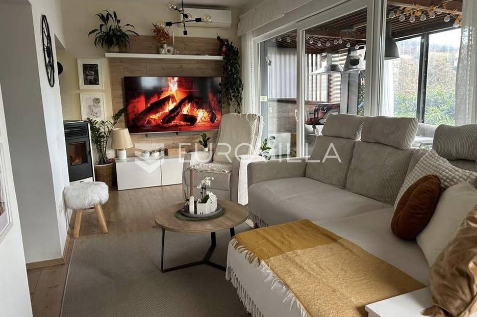 Stan površine 59 m2 sastoji se od hodnika, dvije spavaće sobe, kupaonice, open space kuhinje, blagavaonice i dnevnog boravka s izlazom u zimski vrt i na okućnicu ukupne površine 49 m2. Zimski vrt i okućnica daju ovom stanu komfor i oazu za opuštanje i uživanje.Stan je u potpunosti adaptiran prije dvije godine, nove instalacije struje i vode, nova PVC stolarija. Grijanje peć na drva ili struja, prodaje se namješten.Stan se nalazi u prizemlju stambene kuće i ima svoj odvojeni ulaz. Kuća ima novu fasadu i novi kanalizacijski sustav.Mirna i tiha lokaciji za idličan život okružena prirodom i zelenilom.Za sve ostale informacije budite nam se slobodni obratiti.