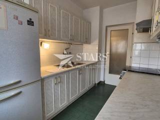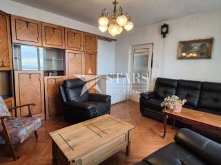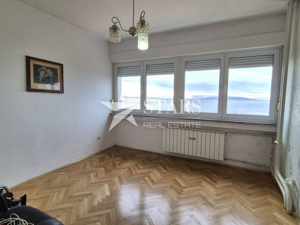 Die Wohnung ist südwestlich ausgerichtet und bietet einen offenen, panoramischen Blick auf die Stadt und das Meer. Sie besteht aus einem Eingangsbereich, separater Toilette, Badezimmer, drei Schlafzimmern (eines mit Zugang zur Loggia, eines mit einem kleinen Balkon), einer Küche mit Essbereich sowie einem Wohnzimmer mit direktem Ausgang auf eine große Loggia.