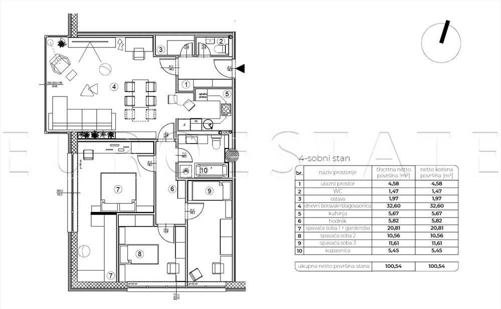 - stan je potpuno izgrađen, prodaje se u stupnju dovršenosti "KLJUČ U RUKE", spreman je za useljenje,