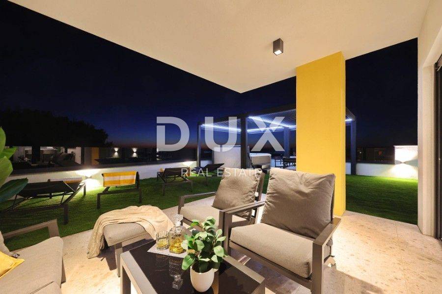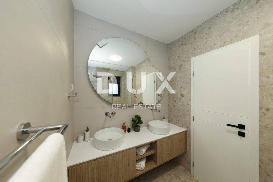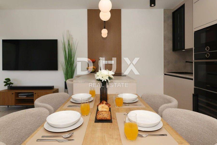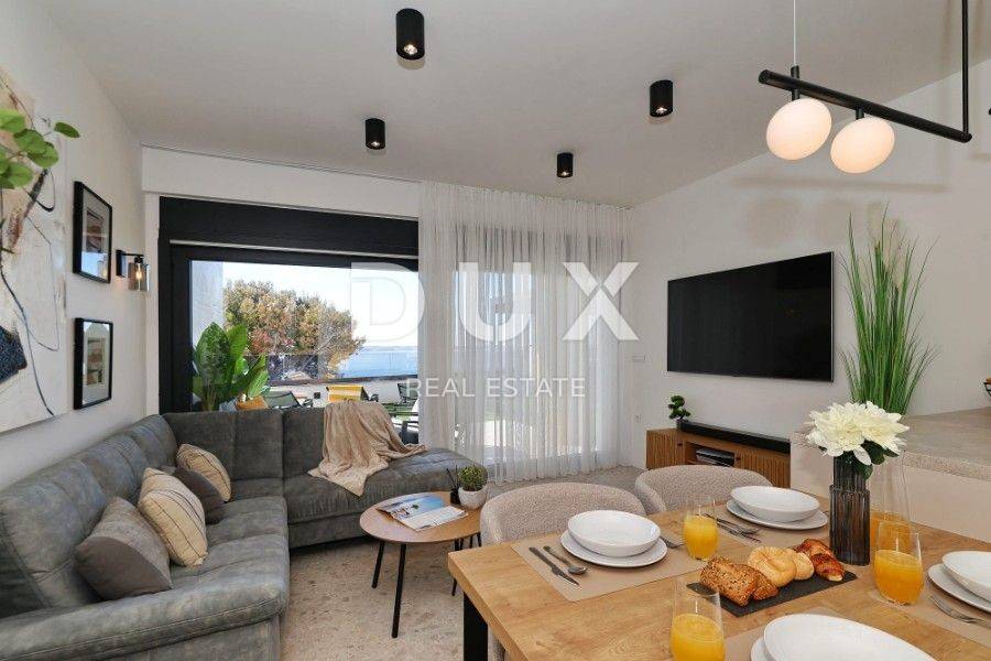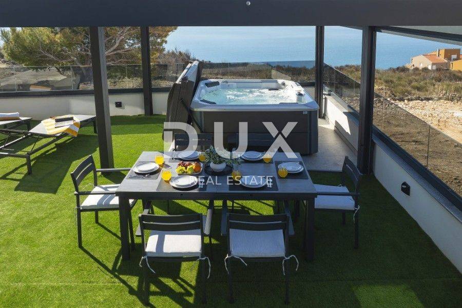 Nur wenige Autominuten von der Insel Pag und eine halbe Stunde von Zadar entfernt, steht im ruhigen Küstenort Rtina eine moderne und voll möblierte Zweizimmerwohnung mit privatem Garten und Whirlpool zum Verkauf. Diese Immobilie ist eine ideale Gelegenheit für alle, die ein möbliertes Ferienhaus, eine touristische Investition oder ein ruhiges Leben am Meer in einem neueren Gebäude und einer hochwertig gestalteten Wohnfläche suchen. Die Wohnung befindet sich im Erdgeschoss eines Neubaus und verfügt über einen eigenen Eingang und einen umzäunten Garten, der absolute Privatsphäre bietet. Sie ist modern eingerichtet, mit Schwerpunkt auf Komfort und Funktionalität, und wird voll möbliert verkauft bezugsfertig ohne zusätzliche Investitionen. Der Innenbereich besteht aus zwei Schlafzimmern (eines davon mit eigenem Bad), einem Badezimmer, einem Wohnzimmer mit Zugang zur Terrasse und zum Garten sowie einer modern ausgestatteten Küche mit Esszimmer. Der Hof ist zum Genießen angelegt mit Whirlpool, Liegestühlen, Außendusche, Grill und überdachtem Essbereich. Perfekt für einen Aufenthalt im Freien während des größten Teils des Jahres mit einem bezaubernden Blick auf das Meer und die umliegenden Inseln. Die Lage bietet einfachen Zugang zum Strand, der nur wenige Gehminuten entfernt ist, während Geschäfte, Restaurants und alle notwendigen Annehmlichkeiten leicht erreichbar sind. Die Nähe zu Pag und Zadar macht diese Immobilie strategisch ideal für ein ruhiges Leben, einen Wochenendausflug oder ein stabiles Einkommen aus dem Tourismus. Diese Immobilie stellt die perfekte Mischung aus Stil, Qualität und mediterranem Ambiente dar eine ideale Gelegenheit für alle, die ein Leben oder einen Urlaub am Meer ohne Kompromisse suchen.