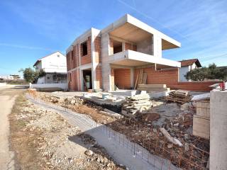 Vodice-**NOVOGRADNJA** prodaje se S1 i S2 dvojna kuća s bazenom na mirnoj lokaciji. Kuća modernog dizajna ima dvije etaže: prizemlje +kat. Trenutačno se gradi i bit će opremljena prema posljednjim standardima gradnje: Pvc stolarija s ALU roletama s električnim podizačima, klima uređaji u spavaćim sobama i dnevnom boravku, podno grijanje u kupaonicama i dnevnom boravku Svakoj kući pripada odgovarajući dio vrta, dva parkirna mjesta i bazen. Planirani rok završetka gradnje je kraj 2026. godine. Nalazi se na mirnoj lokaciji, od centra je udaljena oko 700 m a od najbliže plaže 850 m2.