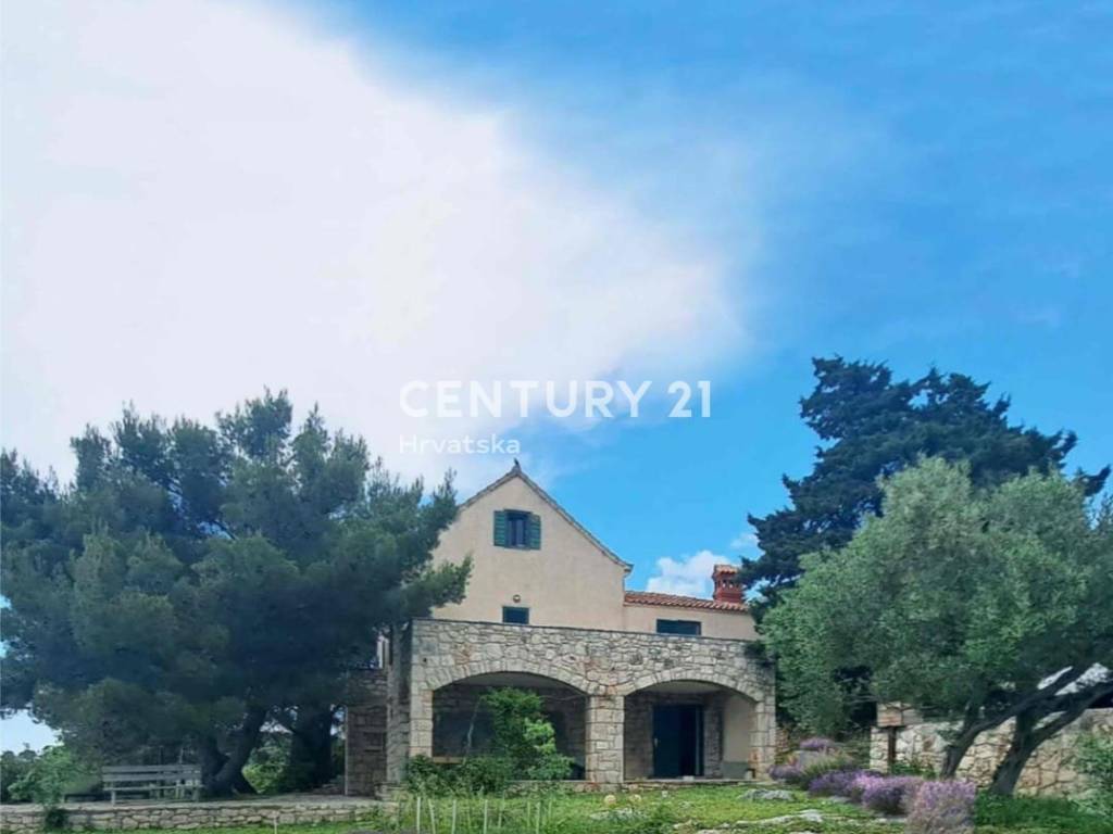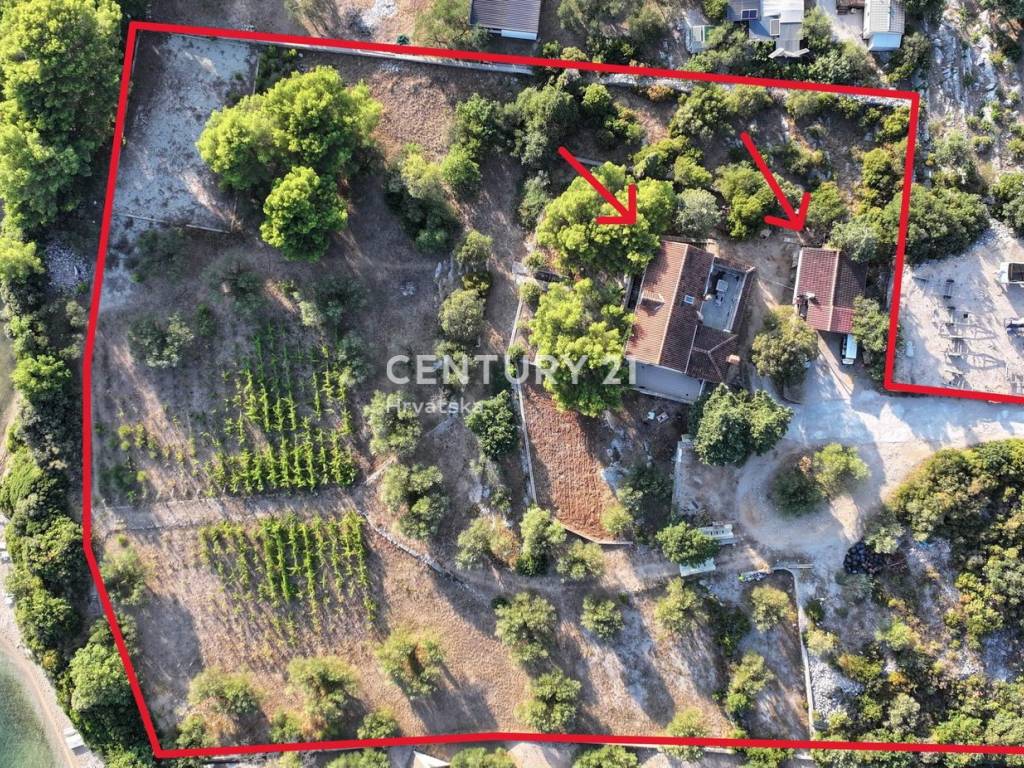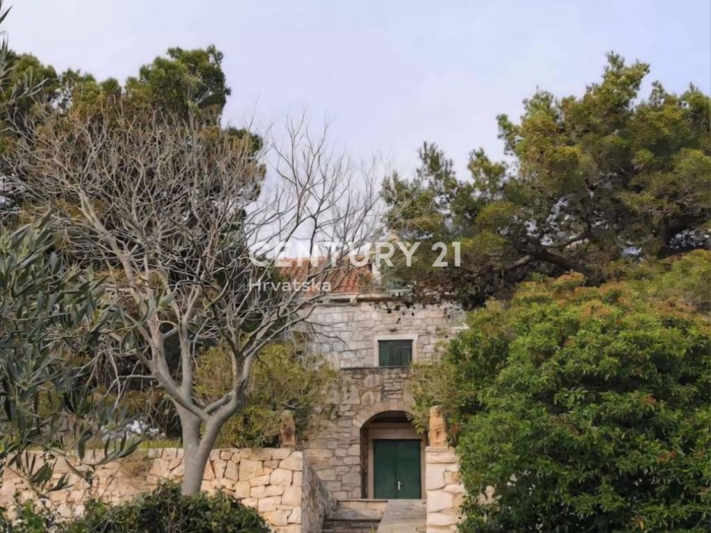 An einem einzigartigen Standort, an einem sanften Hang, der zum Meer abfällt, befindet sich eine authentische Steinvilla mit Nebengebäude und einer gesamten Bruttogeschossfläche von 545 m2 auf einem beeindruckenden Grundstück von fast einem Hektar.