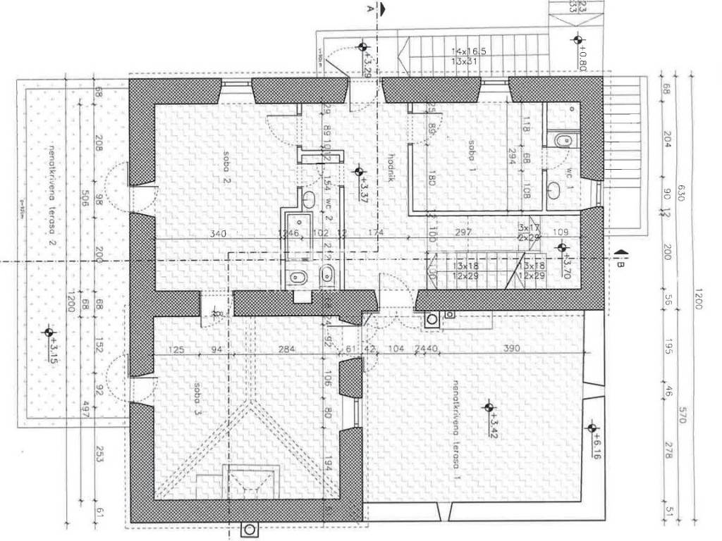 - Dachgeschoss: Flur, zwei Schlafzimmer und Badezimmer