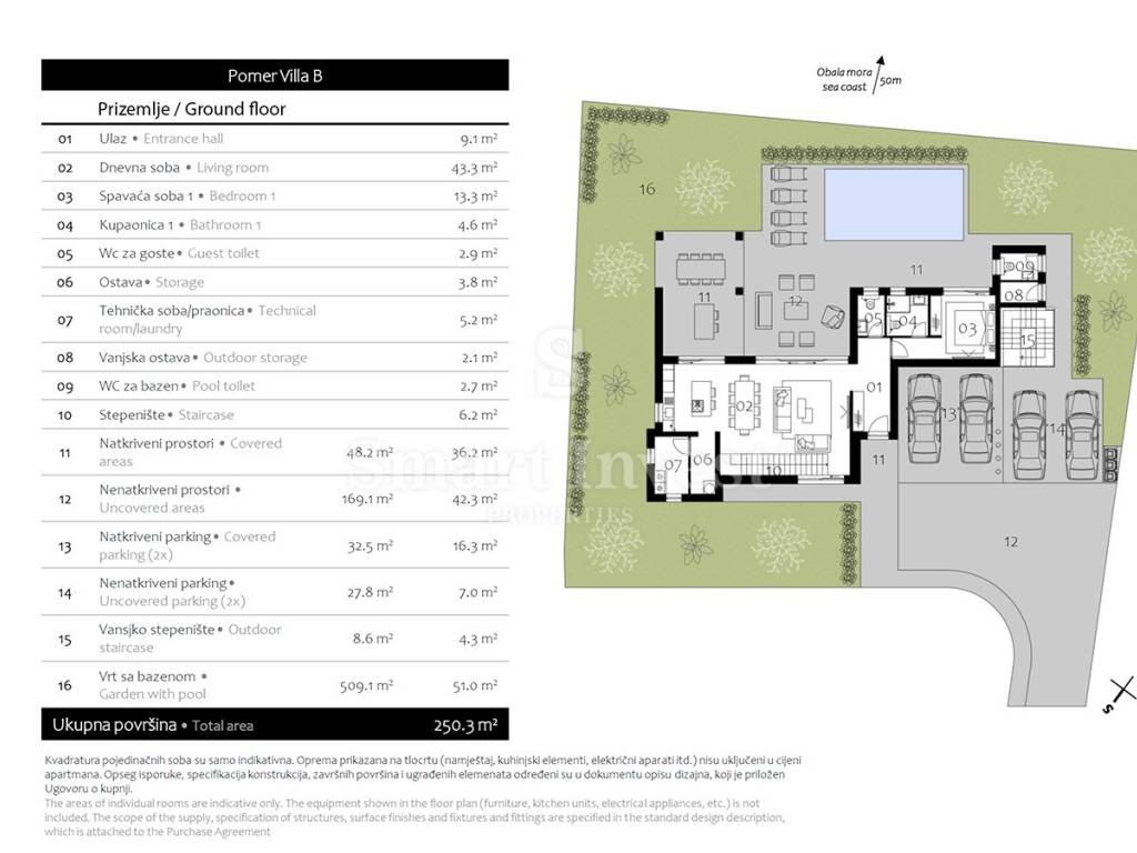 Zum Verkauf steht eine elegante, moderne Villa mit Swimmingpool und einer großzügigen Dachterrasse mit herrlichem Panoramablick auf das Meer und den Yachthafen. Die Villa befindet sich in außergewöhnlicher Lage, nur 75 Meter vom Meer und wenige Gehminuten vom Yachthafen ACI Pomer entfernt die ideale Kombination aus Komfort, Privatsphäre und unmittelbarer Nähe zum Meer.