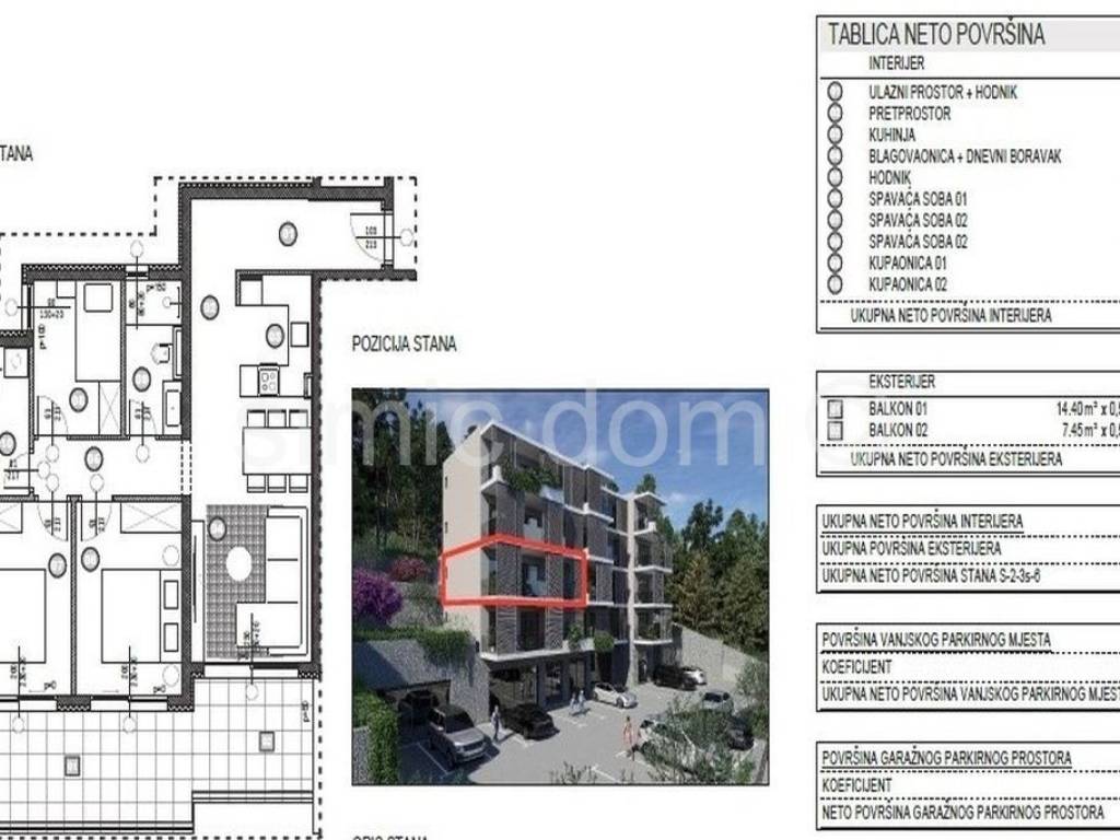 Wir vermitteln beim Verkauf Wohnungen in einem exzellenten Neubau in bester Lage, nur 3 km vom Zentrum von Omis entfernt, zum Verkauf an. Das Gebäude verfügt über ein Erdgeschoss (mit Garagenstellplätzen) sowie vier Obergeschosse. Diese Dreizimmerwohnung befindet sich im zweiten Obergeschoss und bietet eine Wohnfläche von 83,53 m. Sie besteht aus drei Schlafzimmern, zwei Badezimmern, einem Eingangsbereich und einer Wohnküche mit Essbereich. Zwei Balkone bieten einen beruhigenden Blick auf das Meer, die Pinien und die Umgebung. Das Gebäude zeichnet sich durch sorgfältig ausgewählte Baumaterialien aus, und die hochwertige Ausstattung der Wohnung (Klimaanlage in allen Räumen, Fußbodenheizung in den Bädern, elektrische Rollläden, moderne und ansprechende Fliesen und Sanitäreinrichtungen) garantiert hohen Wohnkomfort. Die Lage ist ideal: Alle Annehmlichkeiten der nahegelegenen Omi sind in unmittelbarer Nähe. Der Bauträger ist eine juristische Person und daher nicht zur Zahlung der 3%igen Grundsteuer verpflichtet. Die Eigentumsverhältnisse sind geklärt.