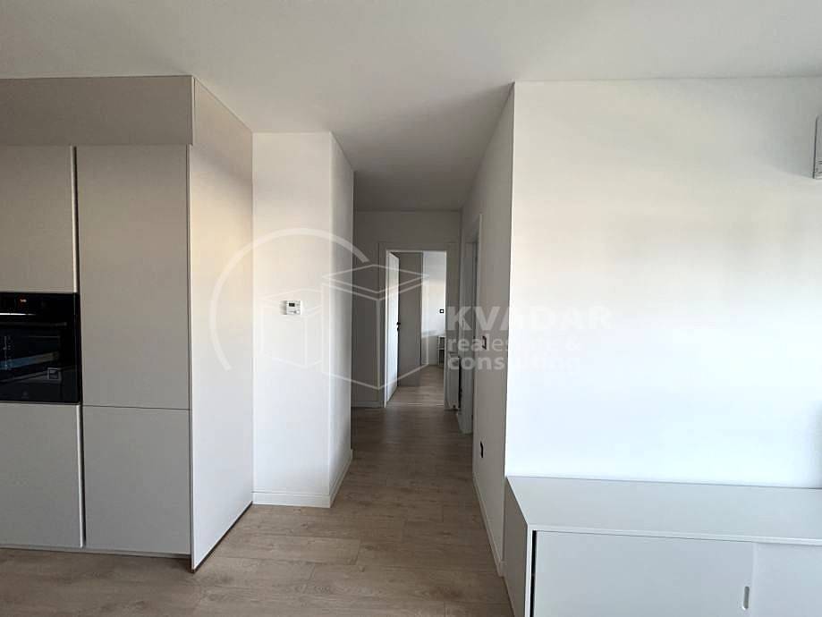 Na 7. katu (od ukupno 7) stambene zgrade s liftom nalazi se svijetao i prozračan trosobni stan s 55,67 m2 stambenog prostora, idealan za život ili najam. Raspored prostorija izuzetno je praktičan: ulazni hodnik, dnevni boravak s kuhinjom i izlazom na terasu od 9,25 m2 (dijelom natkrivenu), dvije spavaće sobe te kupaonica.