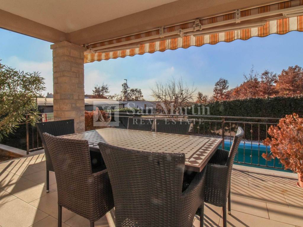 Zum Verkauf steht ein modernes, solides Einfamilienhaus mit Pool in einem ruhigen und gepflegten Dorf, nur wenige Autominuten von Poreč entfernt. Das 155 m große Haus liegt auf einem wunderschön angelegten und komplett umzäunten 533 m großen Grundstück. Dank moderner Architektur, funktionaler Raumaufteilung und viel Tageslicht ist es ein ideales Zuhause für ein ruhiges Familienleben oder eine attraktive Option zur Ferienvermietung.