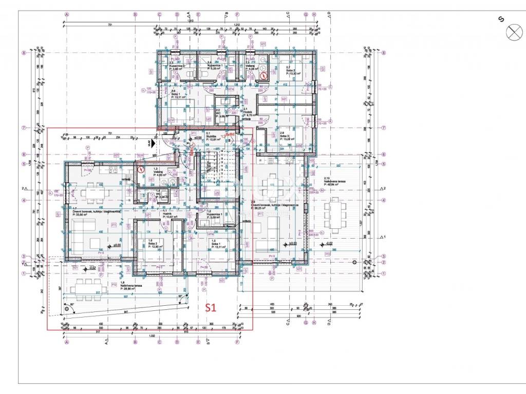 Wohnung S1 besteht aus zwei Schlafzimmern, einem Badezimmer, einem Gäste-WC, einem Hauswirtschaftsraum sowie einer offenen Küche mit Ess- und Wohnbereich und Zugang zu einer überdachten Terrasse von 28,66 m. Die Raumaufteilung ist äußerst funktional und auf modernen Wohnkomfort ausgelegt.