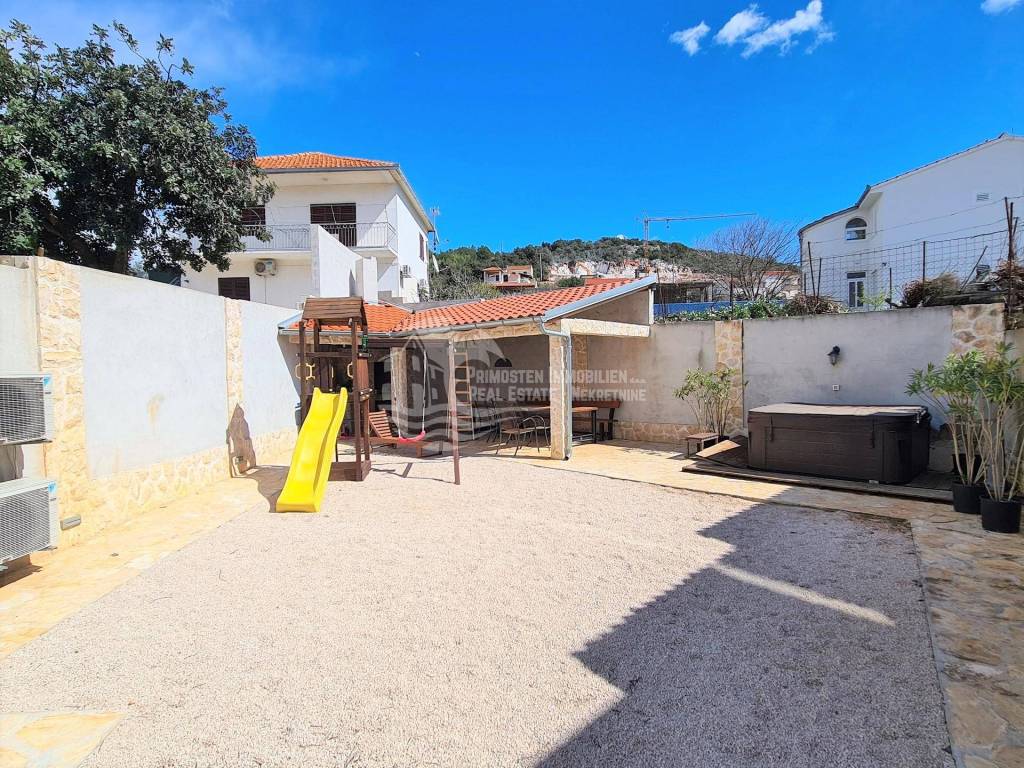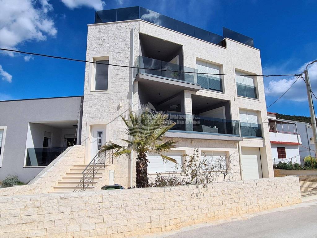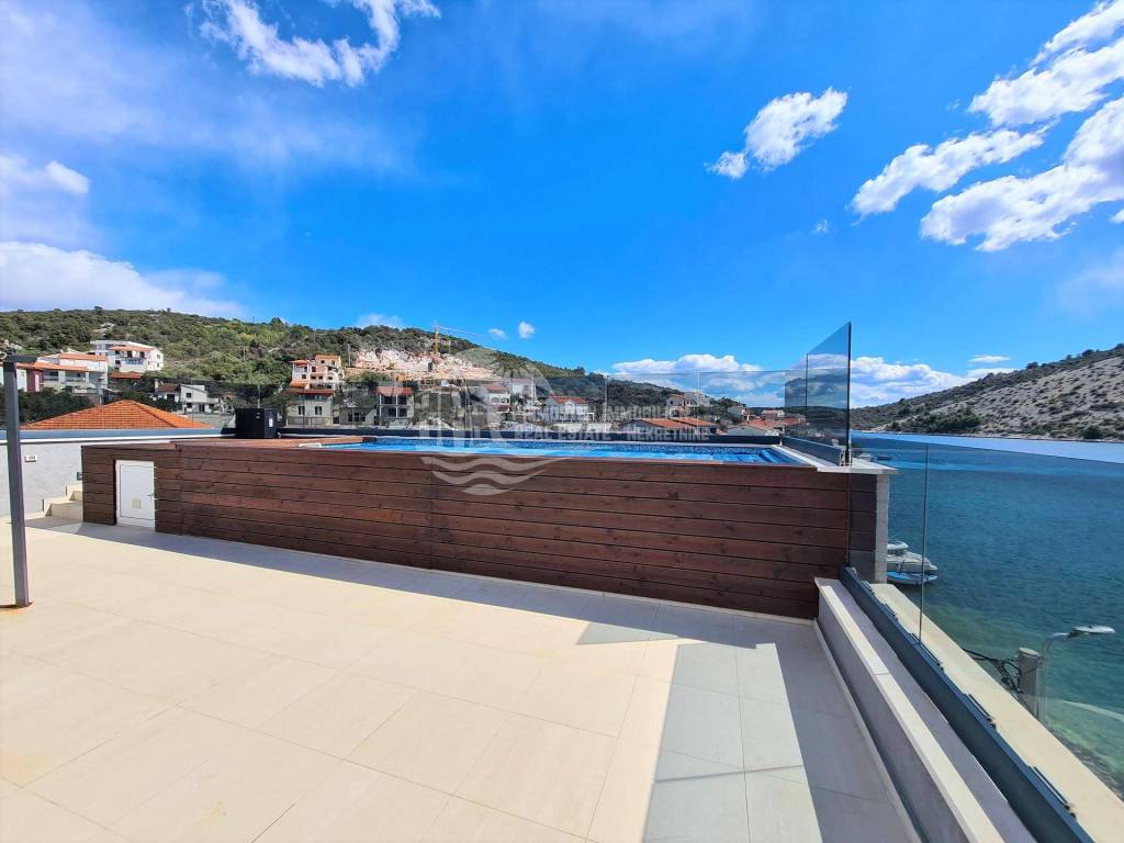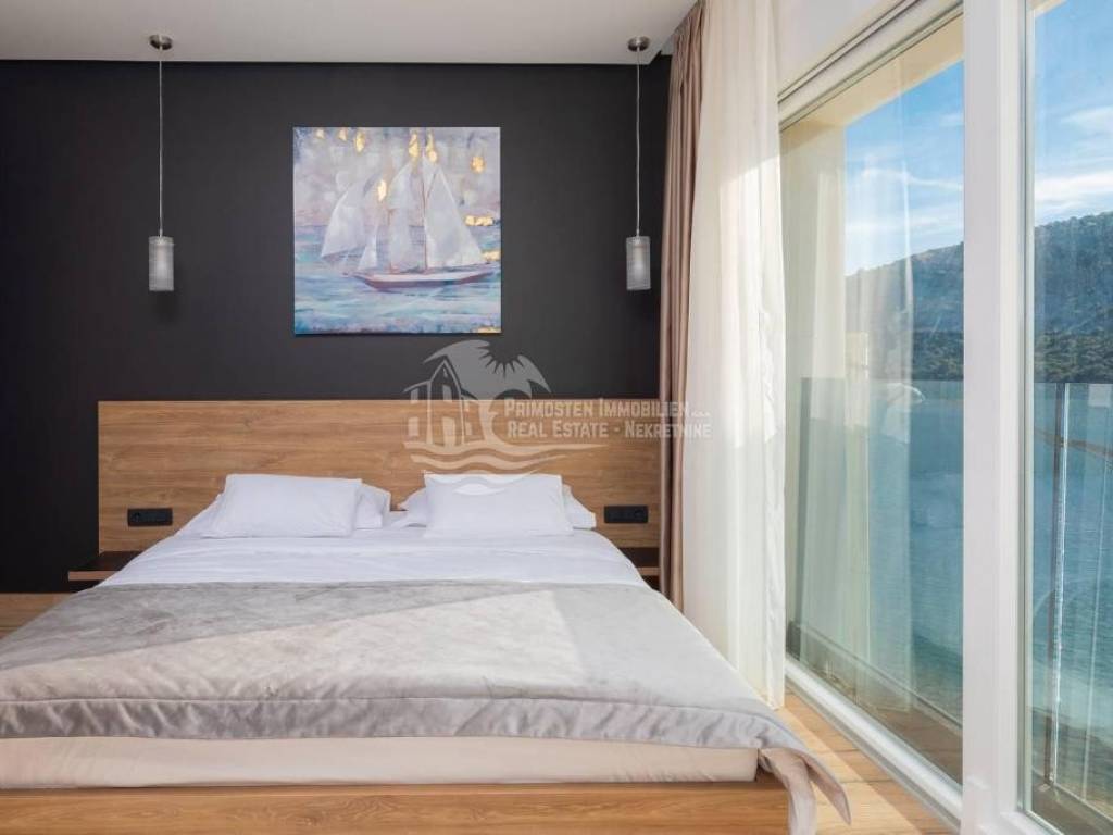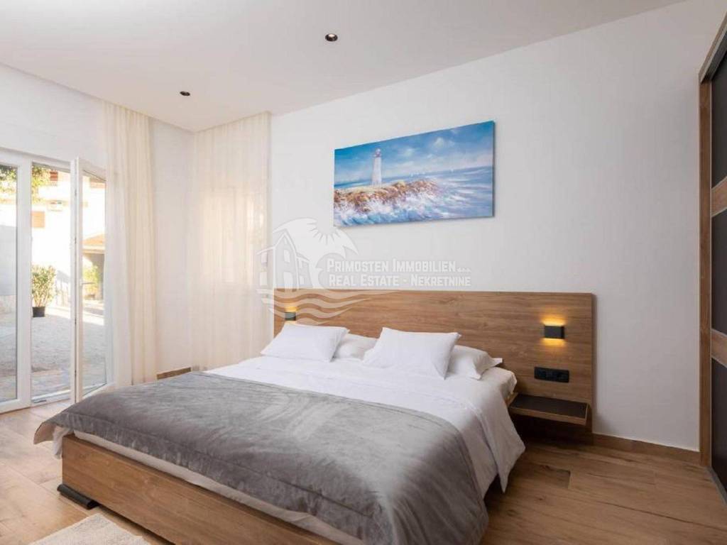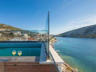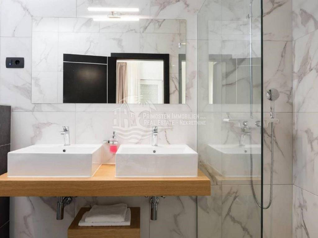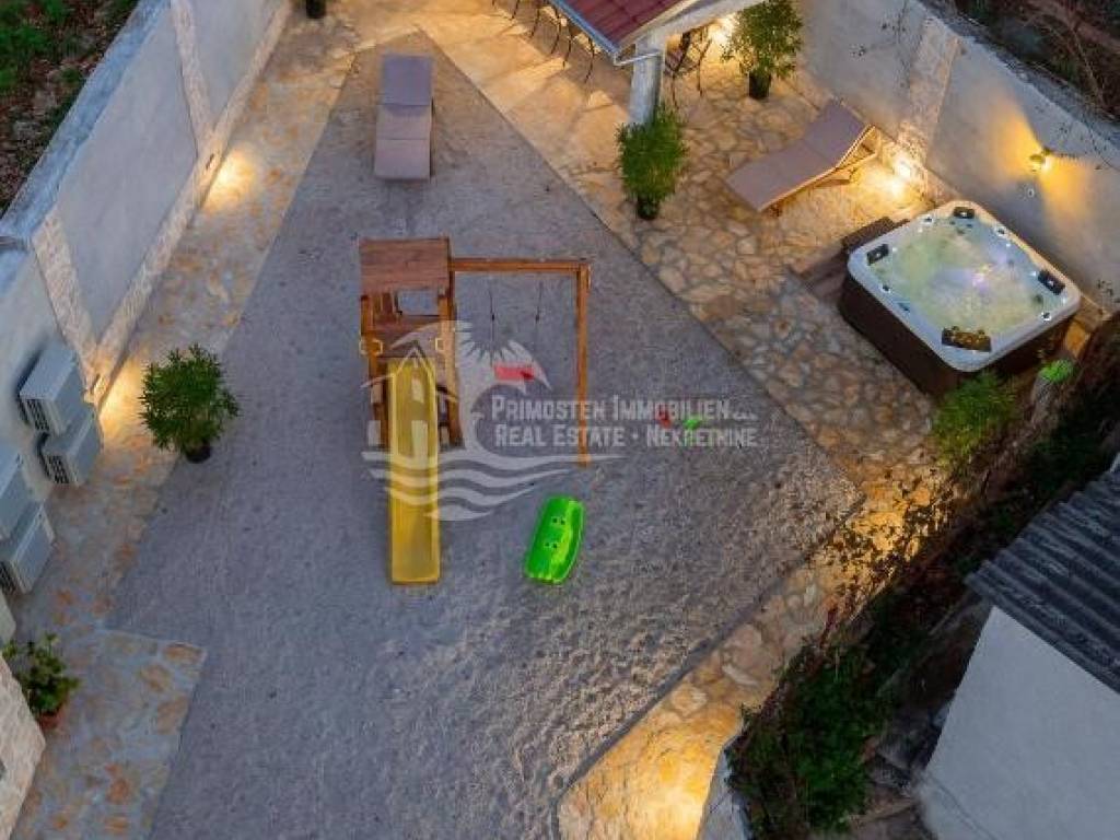 Die bezaubernde Villa befindet sich in einer großartigen Lage, nur wenige Meter vom Strand entfernt im Zentrum der Stadt. Die Villa ist einzigartig wegen ihrer Lage und wegen der perfekten Kombination aus Eleganz und modernem Design. Die Villa erstreckt sich über drei Wohnetagen: Erdgeschoss, Obergeschoss und Obergeschoss mit Zugang zur Dachterrasse mit Swimmingpool, von der aus Sie einen fantastischen Blick auf das Meer und die schönsten Sonnenuntergänge genießen können. Das Erdgeschoss dieser bezaubernden Villa besteht aus einem Raum für Erholung und Entspannung, ausgestattet mit Trainingsgeräten und einer Sauna, zwei Schlafzimmern mit Badezimmern und einem Maschinenraum. Das Schlafzimmer hat einen Ausgang zum Hof, wo sich eine überdachte Terrasse mit Grill, Kinderspielplatz und Whirlpool befindet. Im ersten Stock befindet sich ein geräumiges Wohnzimmer, das modern eingerichtet ist und einen Ausgang zum Balkon hat, von dem aus wir den Blick auf das schöne Meer und den Ort genießen können. Die Küche, das Esszimmer und das Gäste-WC befinden sich ebenfalls im ersten Stock. Eine Dosis Eleganz und Komfort ist bei jedem Schritt dieser Villa vorhanden. Die perfekte Kombination aus Eleganz und modernem Design ist in jeder Ecke zu spüren und wird durch den bezaubernden Meerblick aus jedem Zimmer dieser Villa ergänzt. Auf der zweiten Etage befinden sich drei Schlafzimmer, von denen jedes über ein eigenes Badezimmer verfügt. Zwei Zimmer haben begehbare Kleiderschränke. Eine beleuchtete Treppe führt von der Halle zur Dachterrasse, wo sich ein beheizter Swimmingpool und ein Sonnendeck befinden. Von der Dachterrasse genießen Sie einen einzigartigen Panoramablick über die gesamte Bucht bis hin zum offenen Meer. Die Villa ist hervorragend gebaut, hat eine hervorragende Isolierung, die Zimmer sind klimatisiert und verfügen über eine Fußbodenheizung. Es befindet sich in toller Lage am Meer, bietet eine außergewöhnliche Aussicht und ist ein echtes Schmuckstück im Immobilienangebot. Die Villa verfügt über eine Garage und einen Parkplatz für drei Autos. Für nähere Informationen kontaktieren Sie uns per E-Mail oder Telefon.