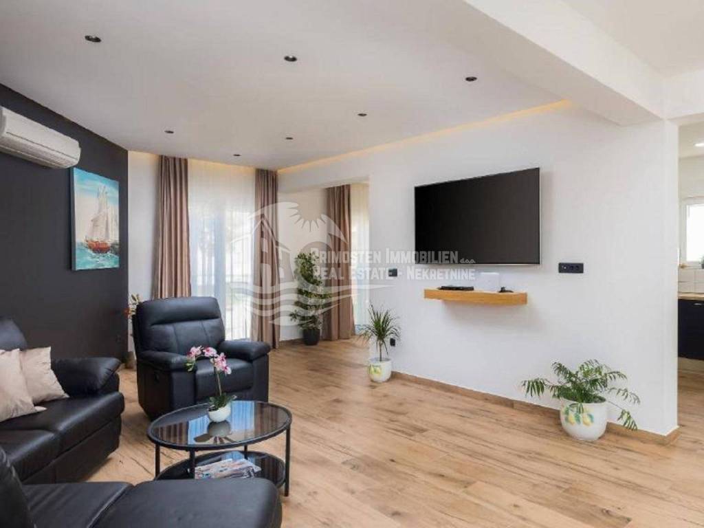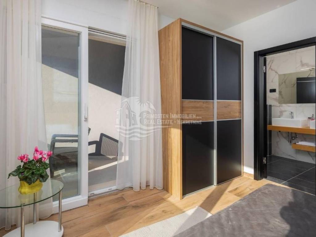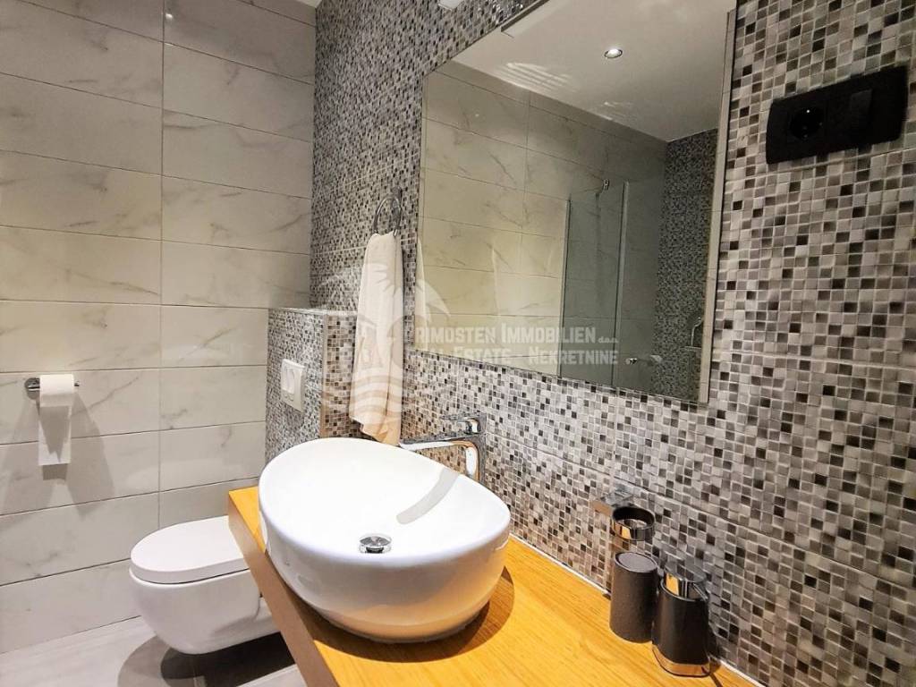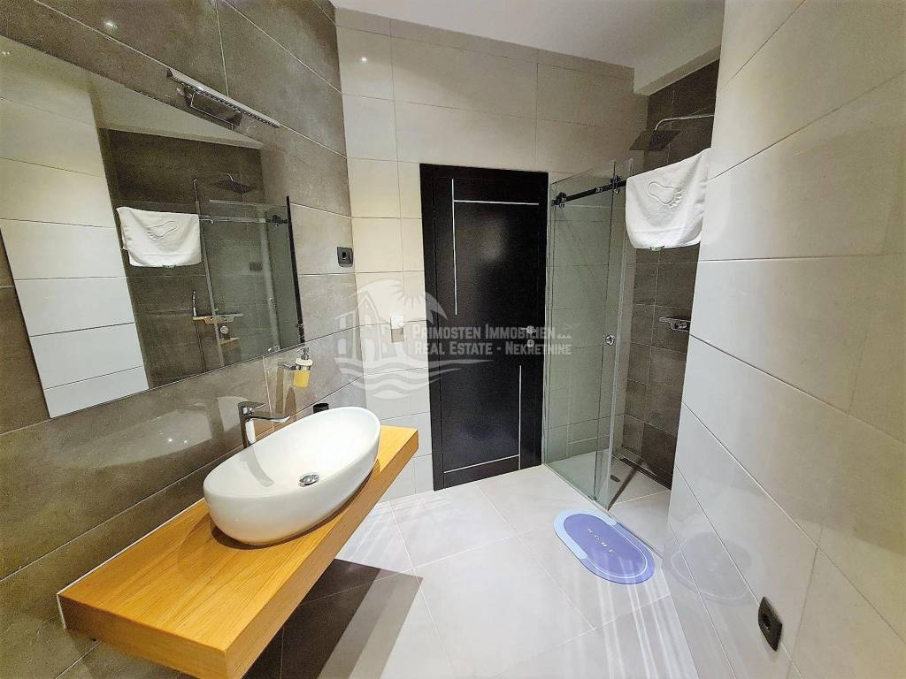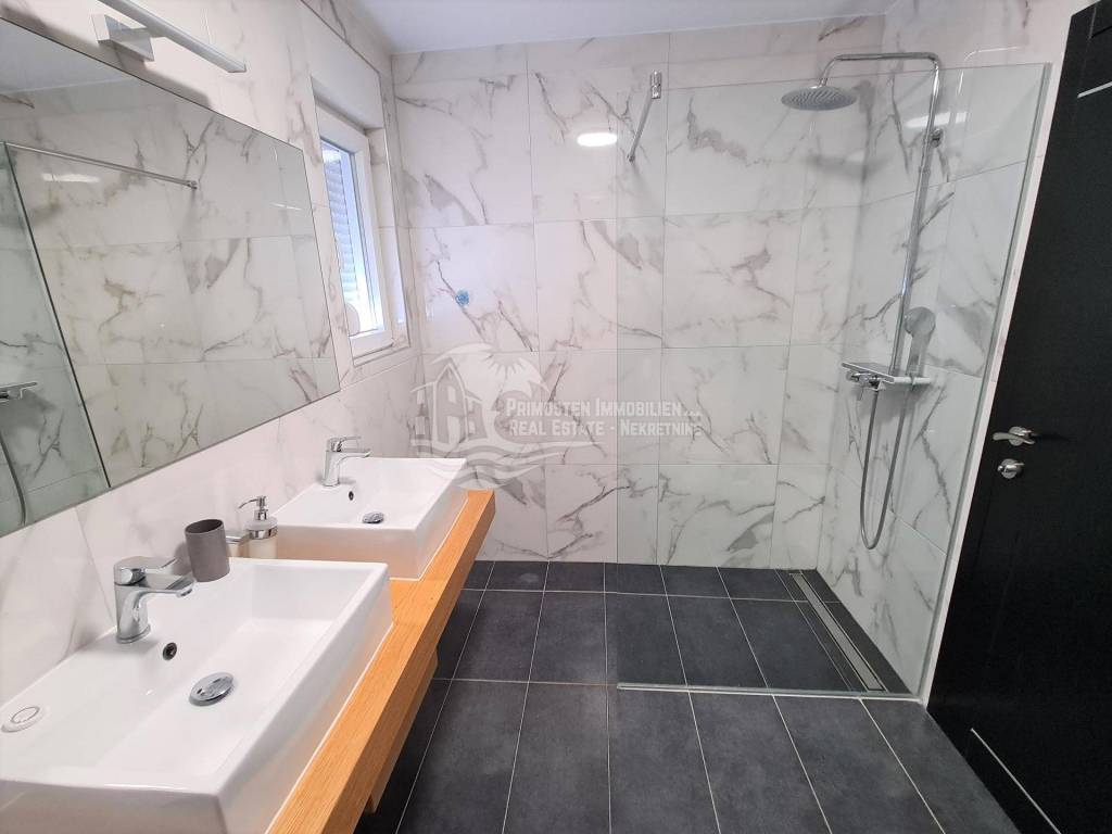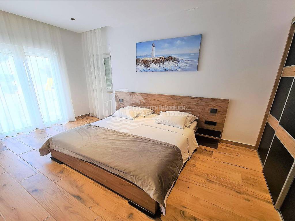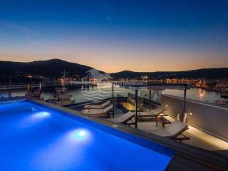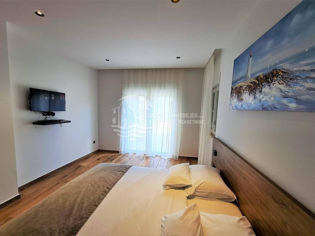 Die bezaubernde Villa befindet sich in einer großartigen Lage, nur wenige Meter vom Strand entfernt im Zentrum der Stadt. Die Villa ist einzigartig wegen ihrer Lage und wegen der perfekten Kombination aus Eleganz und modernem Design. Die Villa erstreckt sich über drei Wohnetagen: Erdgeschoss, Obergeschoss und Obergeschoss mit Zugang zur Dachterrasse mit Swimmingpool, von der aus Sie einen fantastischen Blick auf das Meer und die schönsten Sonnenuntergänge genießen können. Das Erdgeschoss dieser bezaubernden Villa besteht aus einem Raum für Erholung und Entspannung, ausgestattet mit Trainingsgeräten und einer Sauna, zwei Schlafzimmern mit Badezimmern und einem Maschinenraum. Das Schlafzimmer hat einen Ausgang zum Hof, wo sich eine überdachte Terrasse mit Grill, Kinderspielplatz und Whirlpool befindet. Im ersten Stock befindet sich ein geräumiges Wohnzimmer, das modern eingerichtet ist und einen Ausgang zum Balkon hat, von dem aus wir den Blick auf das schöne Meer und den Ort genießen können. Die Küche, das Esszimmer und das Gäste-WC befinden sich ebenfalls im ersten Stock. Eine Dosis Eleganz und Komfort ist bei jedem Schritt dieser Villa vorhanden. Die perfekte Kombination aus Eleganz und modernem Design ist in jeder Ecke zu spüren und wird durch den bezaubernden Meerblick aus jedem Zimmer dieser Villa ergänzt. Auf der zweiten Etage befinden sich drei Schlafzimmer, von denen jedes über ein eigenes Badezimmer verfügt. Zwei Zimmer haben begehbare Kleiderschränke. Eine beleuchtete Treppe führt von der Halle zur Dachterrasse, wo sich ein beheizter Swimmingpool und ein Sonnendeck befinden. Von der Dachterrasse genießen Sie einen einzigartigen Panoramablick über die gesamte Bucht bis hin zum offenen Meer. Die Villa ist hervorragend gebaut, hat eine hervorragende Isolierung, die Zimmer sind klimatisiert und verfügen über eine Fußbodenheizung. Es befindet sich in toller Lage am Meer, bietet eine außergewöhnliche Aussicht und ist ein echtes Schmuckstück im Immobilienangebot. Die Villa verfügt über eine Garage und einen Parkplatz für drei Autos. Für nähere Informationen kontaktieren Sie uns per E-Mail oder Telefon.