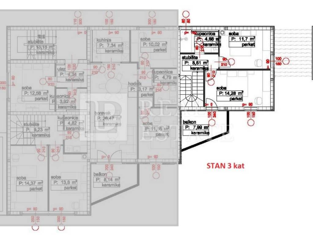 Zur Wohnung gehören noch zwei Terrassen im Erdgeschoss, Fläche 16,11 m2 und 8,81 m2. Darüber hinaus verfügt es über einen eigenen Garten von 170 m2, der Ihnen ermöglicht, schöne Stunden im Freien mit Familie und Freunden zu verbringen und die Möglichkeit für zahlreiche zusätzliche Einrichtungen bietet, die den Wert dieser Immobilie steigern.