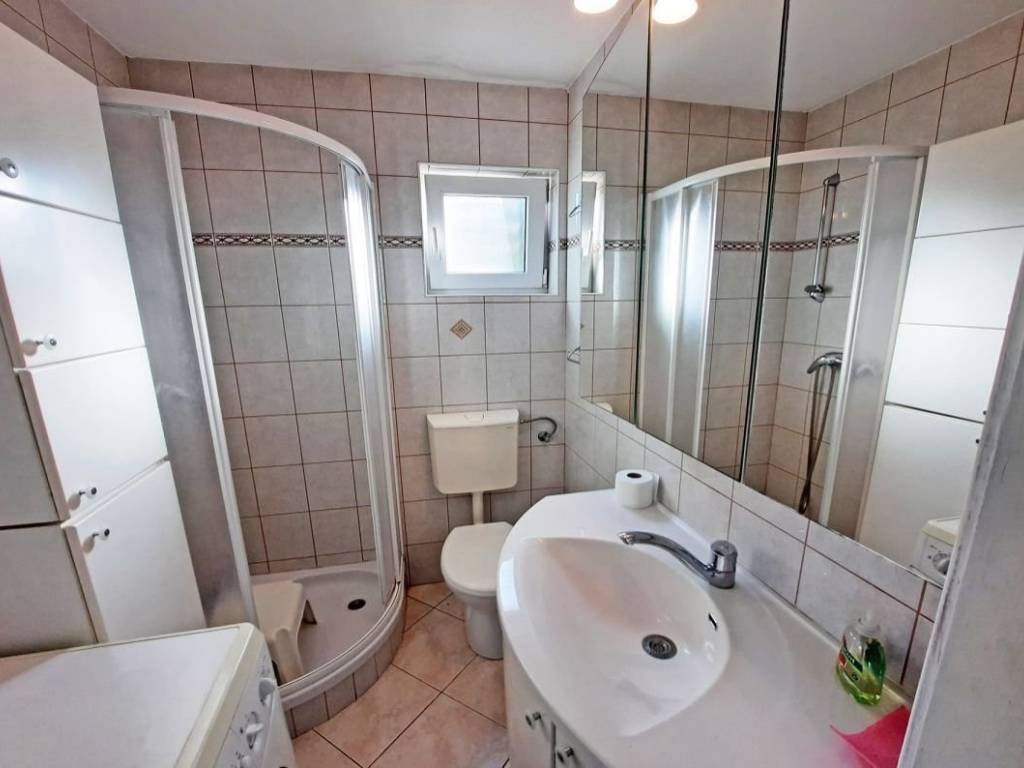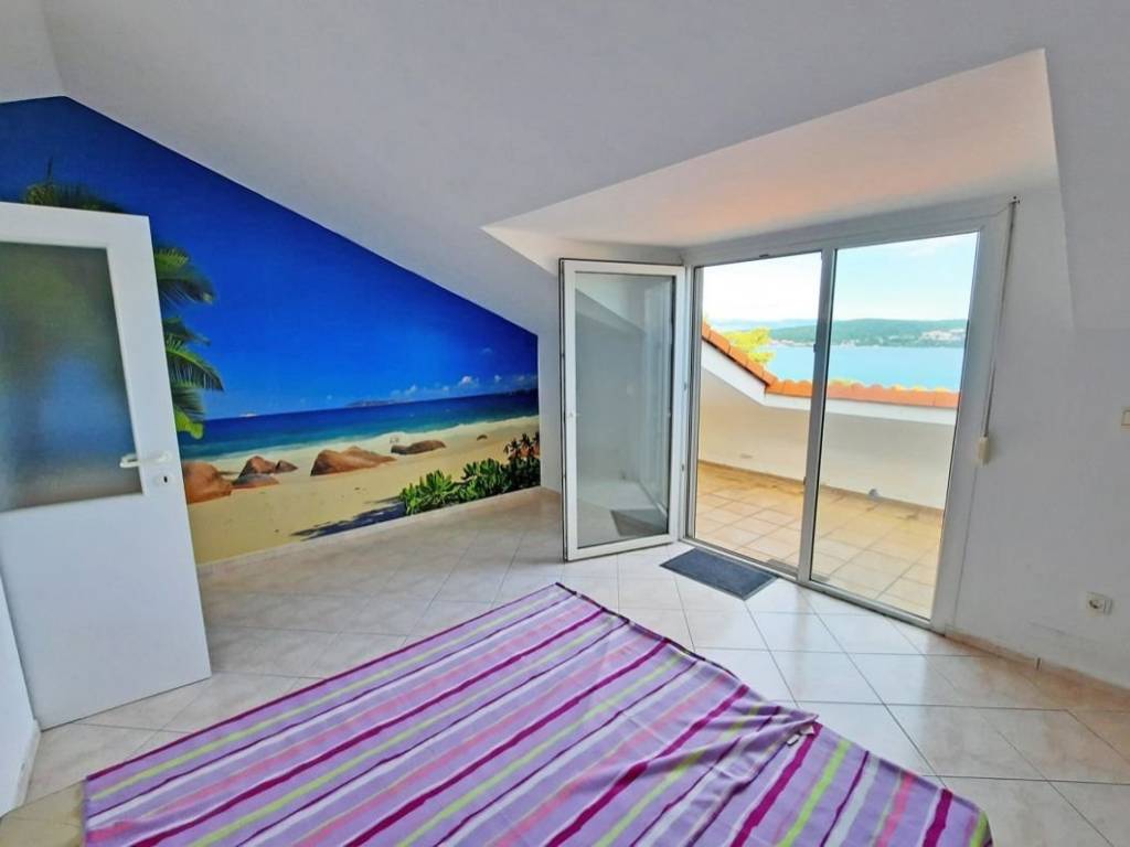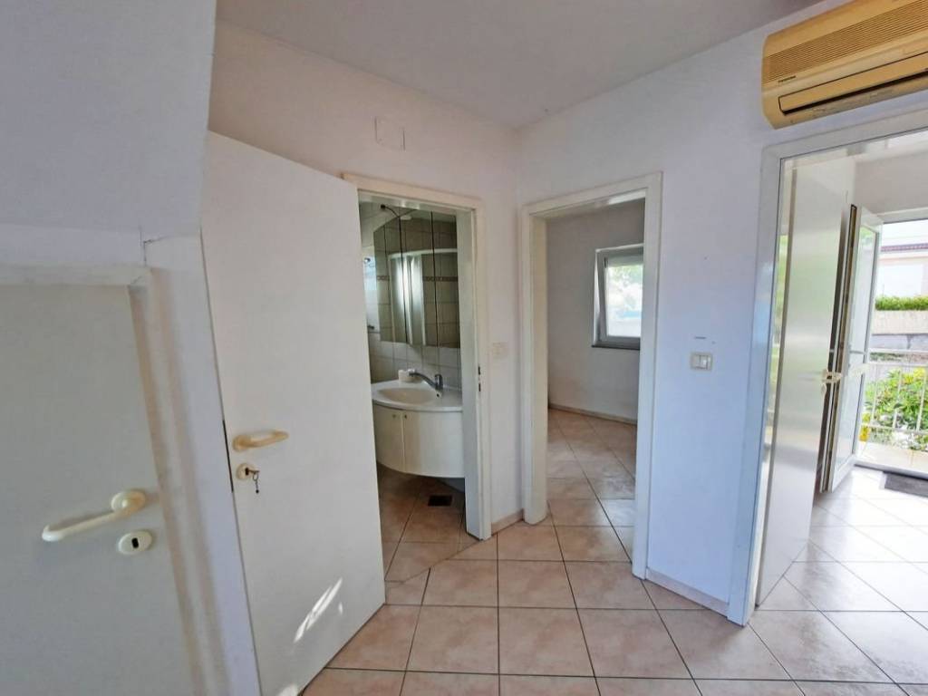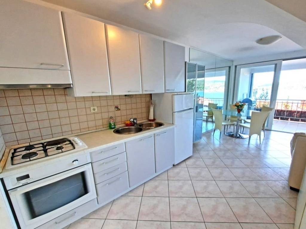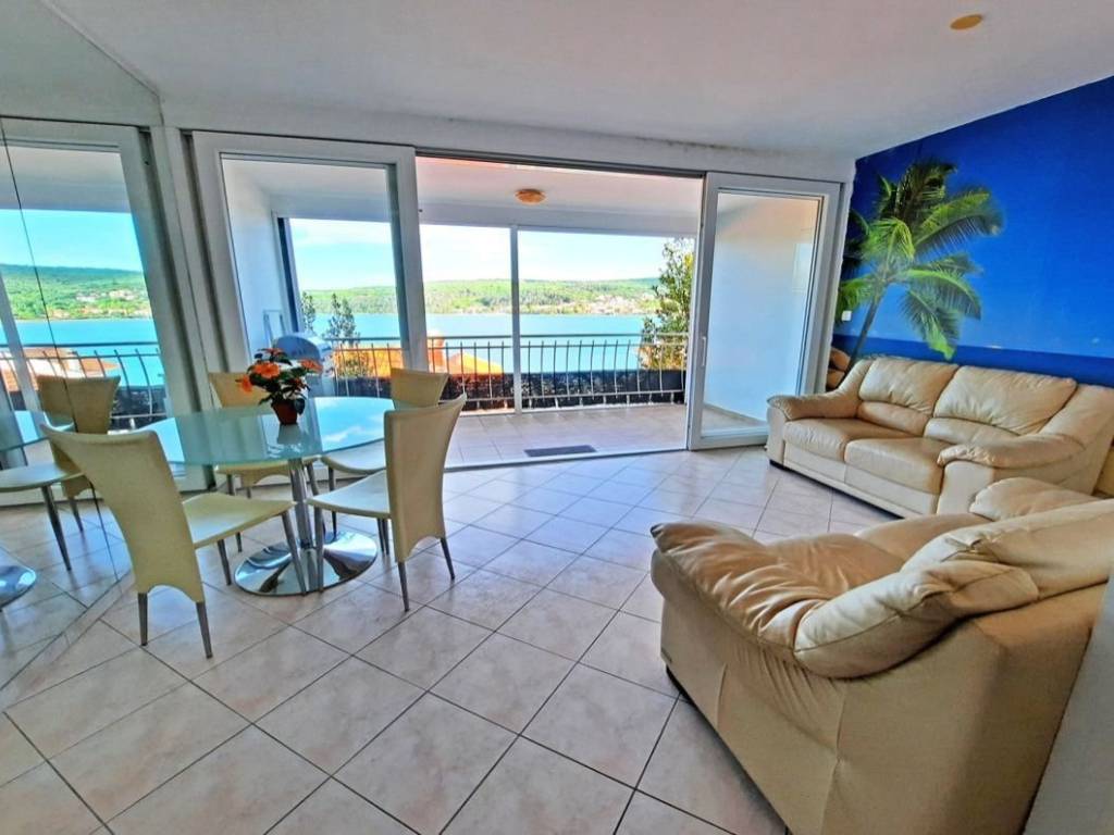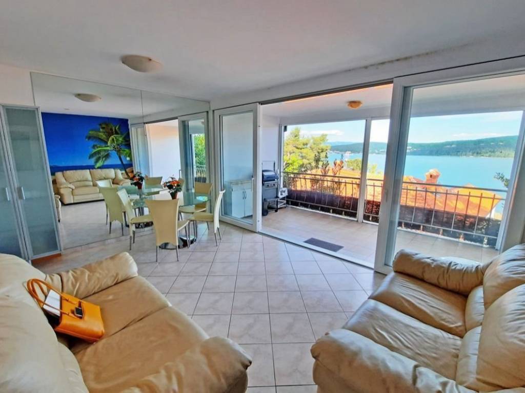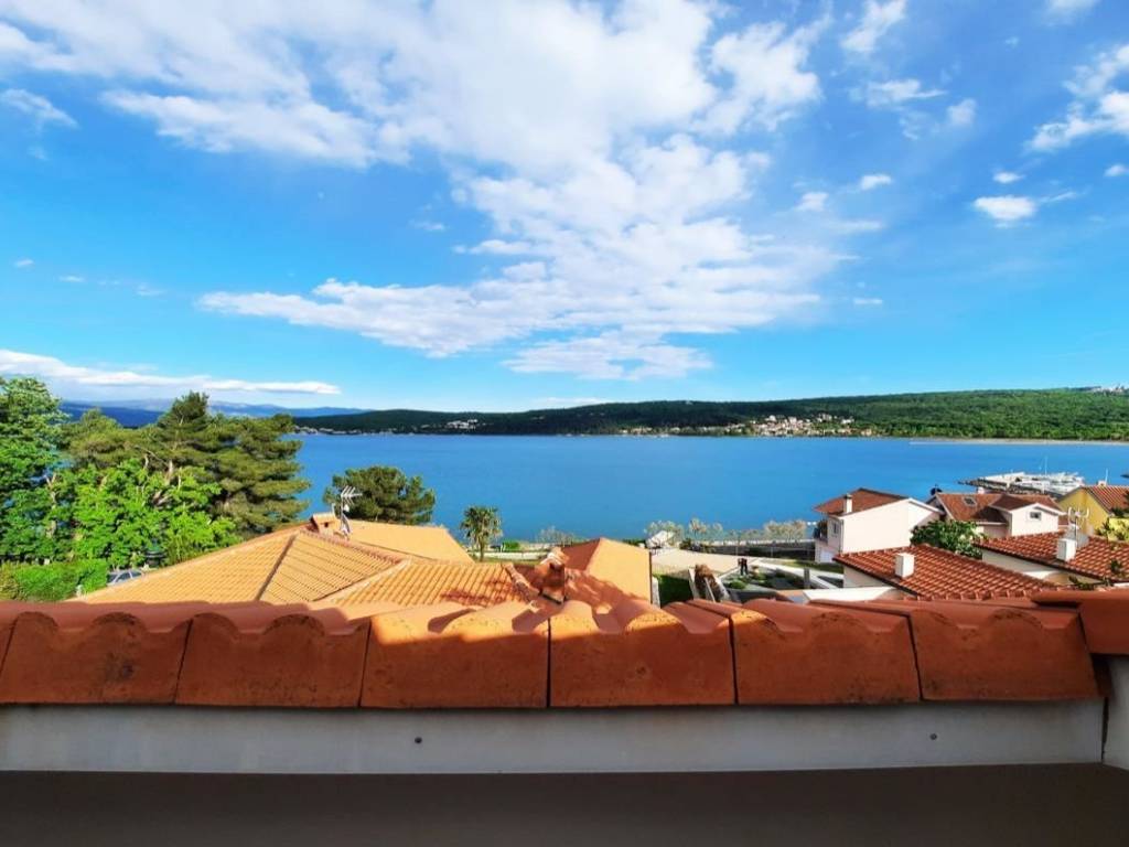 Otok Krk, Uvala Soline, Čižići, prodaja opremljenog dvoetažnog apartmana površine 75,74 m2, s pogledom na more, 60 m od plaže. Apartman se sastoji od prizemlja s dnevnom sobom, kuhinjom, blagovaonom, spavaćom sobom, kupaonicom, ostavom, hodnikom i natkrivenom terasom, te prvog kata sa spavaćom sobom, prostorijom za fitness s jacuzzijem i električnom pripremom za saunu, kupaonicom i terasom. PVC stolarija, klimatizacija, klizna staklena stijena, parkirno mjesto.