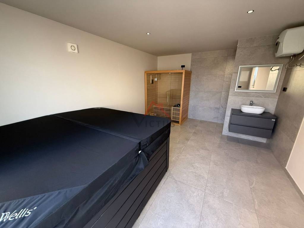 Die Villa besteht aus Erdgeschoss und Obergeschoss, einem Grundstück von 483 m² mit einem 35 m² großen Pool sowie einem Nebengebäude, in dem sich eine Sauna, ein Whirlpool und eine Dusche befinden. Im Erdgeschoss der Villa befinden sich ein geräumiges Wohnzimmer, eine Küche mit Essbereich, eine Sonnenterrasse mit Pool, ein Badezimmer und ein Waschraum. Über eine Innentreppe gelangt man in das Obergeschoss, wo sich das Hauptschlafzimmer mit eigenem Bad und Zugang zur Terrasse sowie zwei weitere Schlafzimmer, von denen eines ebenfalls Zugang zur Terrasse hat, und ein zusätzliches Badezimmer befinden.
