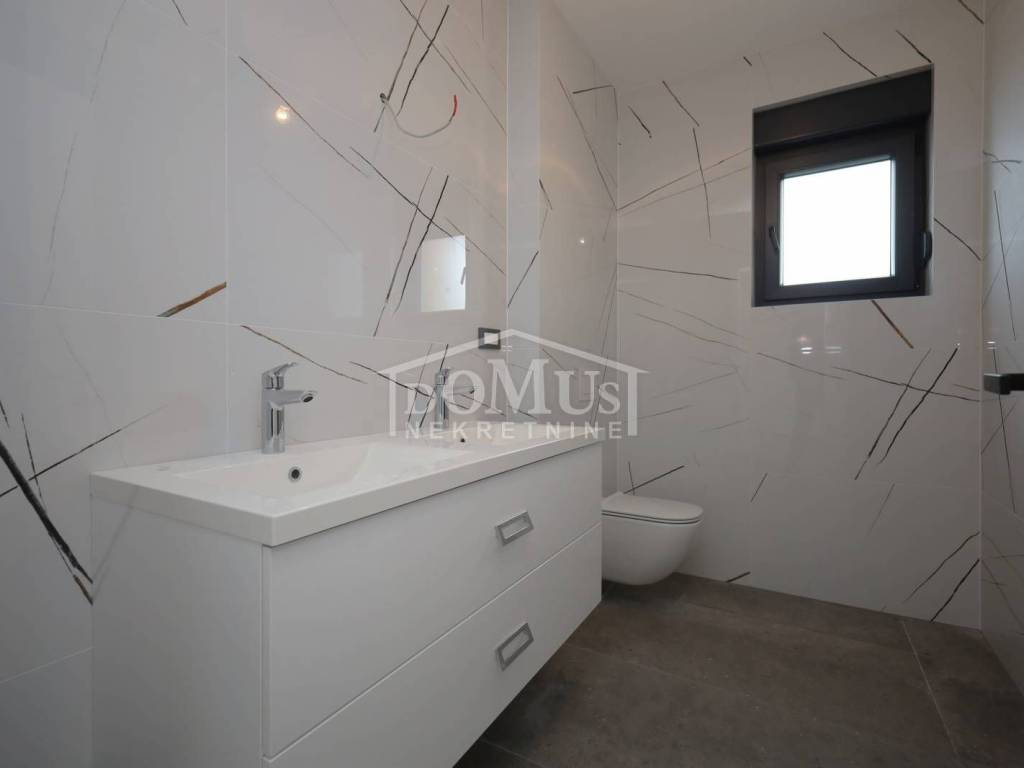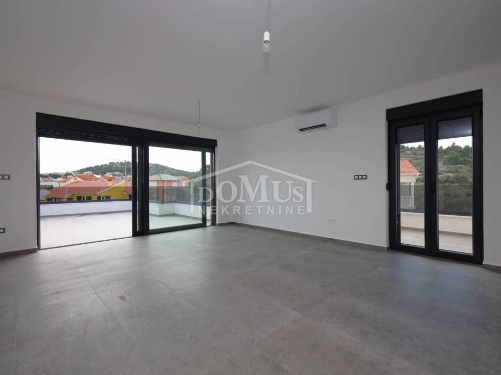Murter, attraktive Lage, 350 m vom Sandstrand entfernt, neu gebaute Penthouse Wohnung mit einer Gesamtnutzfläche von 124,95 m² und wunderschönen Blick auf das Meer. Die Wohnung S4 befindet sich im 2.Stock eines Wohnhauses mit insgesamt 7 Wohnungen. Es hat eine Wohnfläche von 119,95 m² und besteht aus einem Eingangsbereich, Flur, Badezimmer, drei Schlafzimmern, davon eine mit eigenem Badezimmer, Waschraum, Terrassen mit 13,49 m2 und 11,04 m2, sowie einer geräumigen Küche mit Esszimmer und Wohnzimmer als Ganzes mit ebenfalls Zugang zu einer großen Terrasse von 45,57m². Zur Wohnung gehören außerdem zwei Außenparkplatz mit insgesamt 25 m2. Es ist mit vier Klimaanlagen, Fußbodenheizung im Bad und Wohnzimmer, Video-Gegensprechanlage, hochwertigen Keramikmaterialien und Sanitärartikeln, elektrischen Rollos an den großen Terrassentüren und Moskitonetzen an den Fenstern ausgestattet. Zum Meer/Strand sind es 350 m und zum Stadtzentrum 900 m.