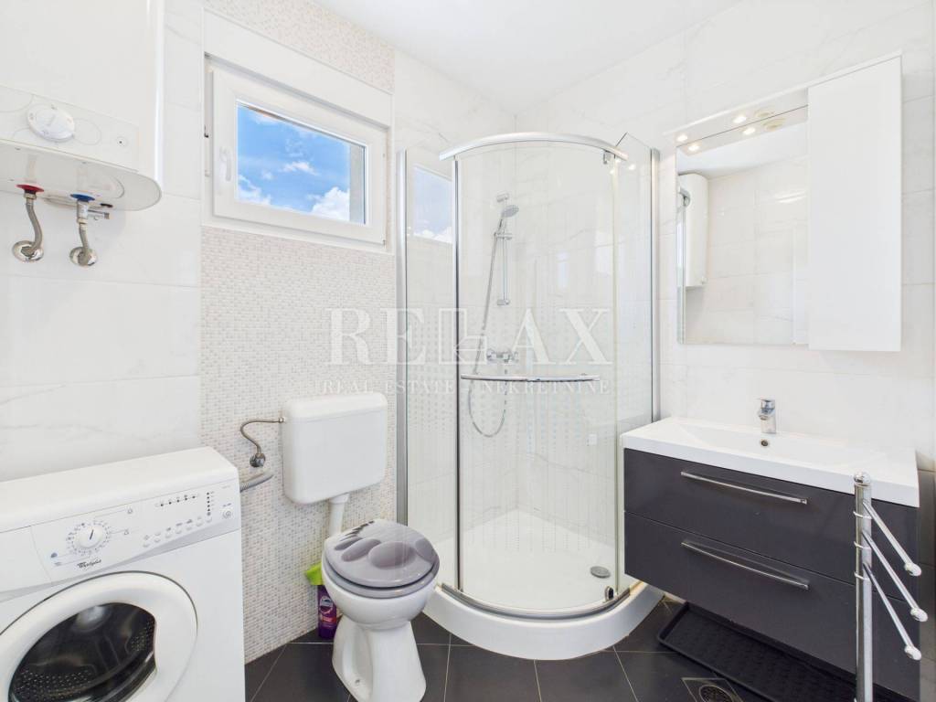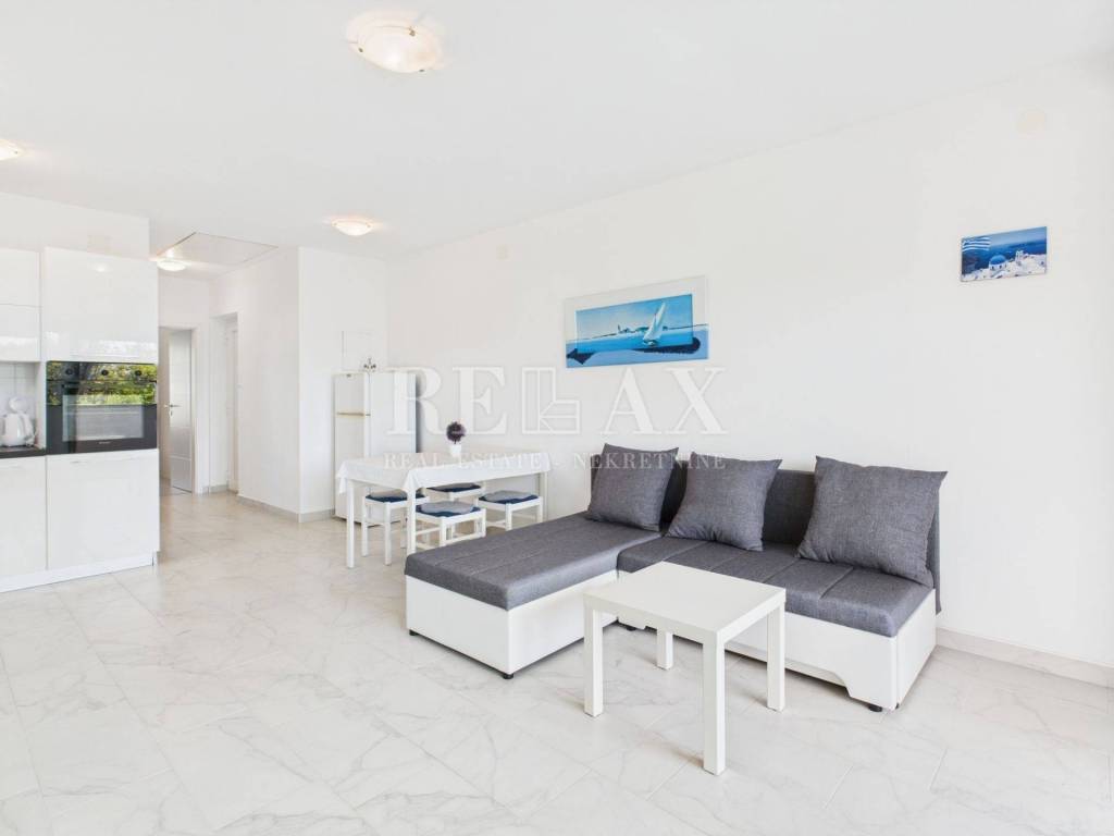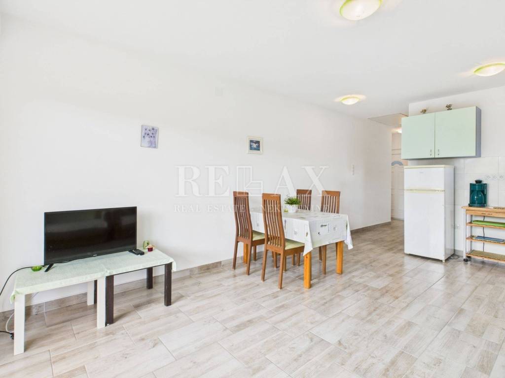 In ruhiger Lage in Povile, nur 400 Meter zu Fuß vom Meer und 350 Meter vom Ortszentrum entfernt, steht eine Wohnetage mit 83,81 m² Wohnfläche zum Verkauf, die aus zwei fast identischen Einzimmerwohnungen besteht. Diese Immobilie stellt eine ideale Investitionsmöglichkeit dar, geeignet für kurzfristige Vermietung oder den Umbau in eine großzügige Familienwohnung.