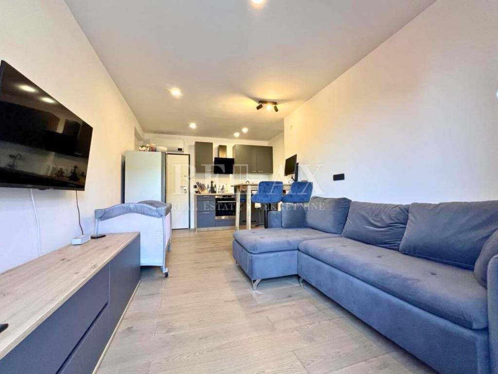 Zum Verkauf steht eine komplett möblierte Wohnung im Erdgeschoss eines Neubaus aus dem Jahr 2023, gelegen in einer ruhigen Gegend von Ičići, nur 1,8 km zu Fuß vom Meer und 1,5 km vom Ortszentrum entfernt. Die Wohnung hat eine Gesamtfläche von 54,26 m², bestehend aus 32,01 m² Wohnfläche und einer großzügigen, nicht überdachten Terrasse von 22,25 m² mit Meerblick.
