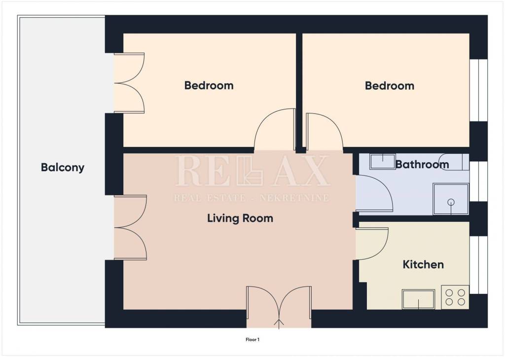 Die Immobilie erstreckt sich über drei Etagen: Im Erdgeschoss befinden sich zwei Garagen – jeweils 14,95 m² groß. Im ersten und zweiten Stock befinden sich zwei Wohnungen mit identischem Grundriss. Die Wohnung im ersten Stock hat eine Wohnfläche von 49,68 m², die im zweiten Stock 46,45 m². Jede Wohnung besteht aus einem Wohnzimmer, einer Küche, zwei Schlafzimmern, einem Badezimmer und einer überdachten Terrasse, die bei Bedarf geschlossen werden kann. Die Raumaufteilung bietet ein angenehmes und funktionales Wohnambiente.