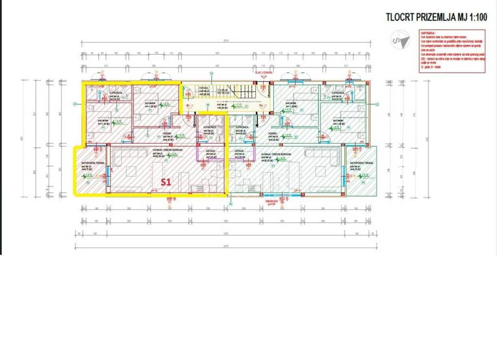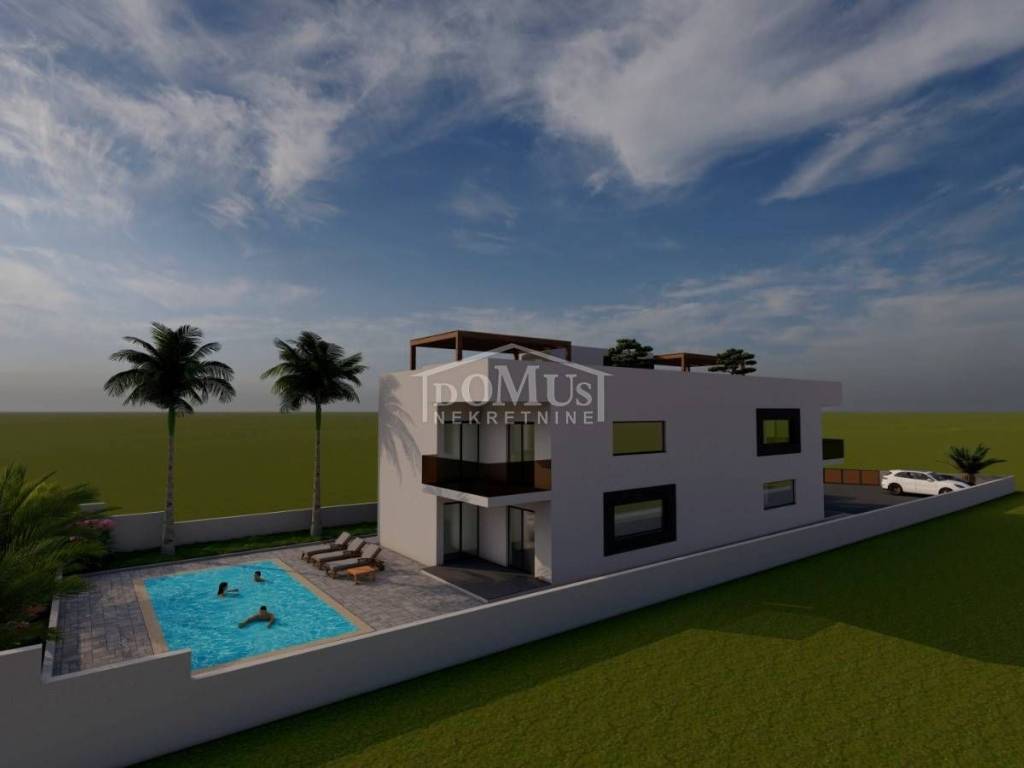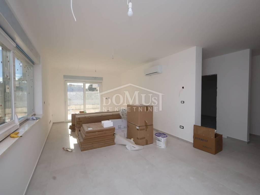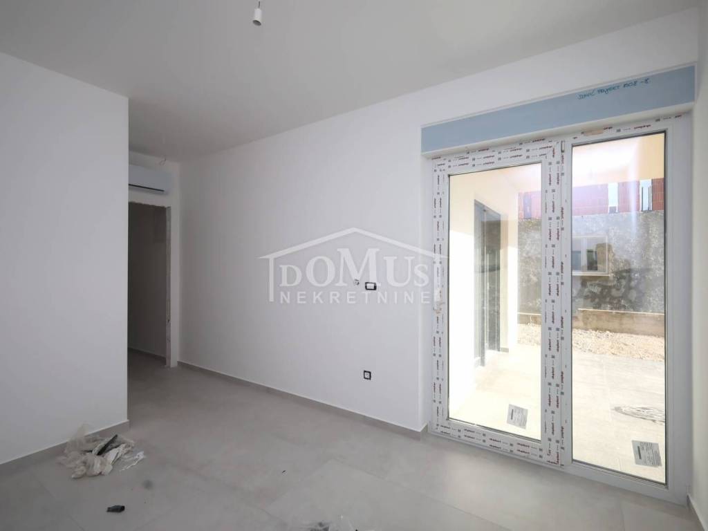Vodice, Neubau, attraktive Lage, komfortable Zwei-Zimmer-Wohnung im Erdgeschoss. Die Wohnung S1 befindet sich in einem kleinen Wohngebäude mit insgesamt 4 Wohnungen. Sie verfügt über ein modernes Design und einen funktionalen Grundriss mit insgesamt 125,28 m² Nutzfläche. Die Wohnung besteht aus einer geräumigen Küche mit Ess- und Wohnbereich, Flur, zwei Schlafzimmern, von denen eines ein eigenes Bad hat, sowie einem zusätzlichen separaten Bad, einem Abstellraum und einer überdachten Terrasse von 9,75 m². Sie ist mit hochwertigen Materialien ausgestattet: Fußbodenheizung und keramische Fliesen in der gesamten Wohnung, Wärmedämmung des gesamten Erdgeschosses zur Vermeidung von Feuchtigkeit, dreifach verglaste Fenster und elektrische Rollläden. Klimaanlagen sind im Wohnzimmer und in allen Schlafzimmern installiert. Zur Wohnung gehören ein Garten von 234 m² mit einem 34,92 m² großen Pool sowie ein Parkplatz. Die Wohnung liegt 1.200 m vom Plava-Strand und 700 m vom Zentrum von Vodice entfernt.