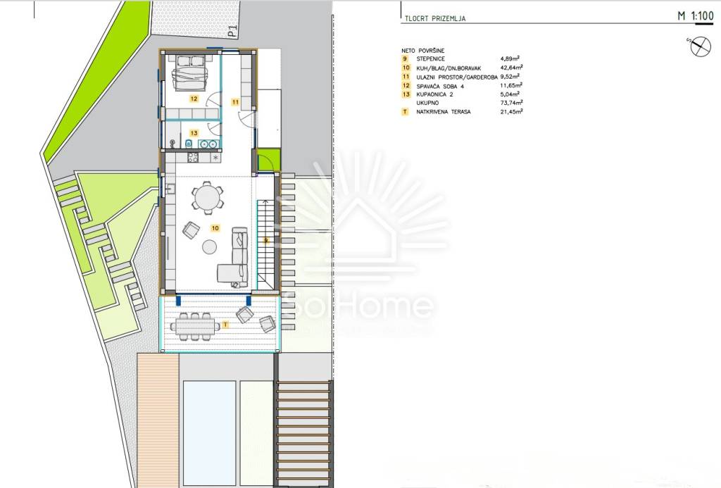 Die Häuser werden im traditionellen dalmatinischen Stil mit rustikalem Charakter errichtet. Die Fassaden werden mit Naturstein aus der Region verkleidet.