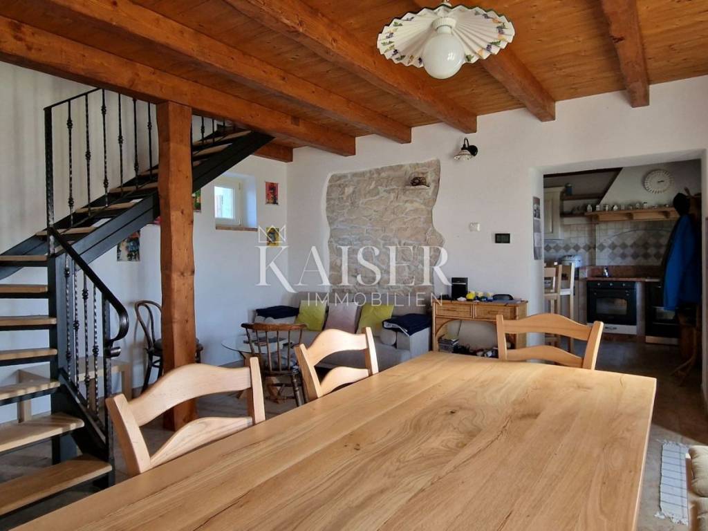 Kaiser Immobilien bietet dieses wunderschöne, authentische istrische Haus am Ende einer Häuserreihe an. Nur 8 km von Umag und dem Meer entfernt, steht dieses liebevoll renovierte istrische Steinhaus zum Verkauf. Es befindet sich in einem kleinen, malerischen Dorf mit nur wenigen Einfamilienhäusern und ist ideal für alle, die Ruhe, Privatsphäre und ein authentisches Naturerlebnis suchen. Das Anwesen liegt in einer traumhaften Lage, umgeben von Grün, frischer Luft und absoluter Stille – die perfekte Umgebung, um dem hektischen Stadtleben zu entfliehen. Das Haus bietet vielfältige Möglichkeiten, ein gemütliches Zuhause, ein Wochenendhaus oder eine Kapitalanlage zur touristischen Vermietung zu schaffen. Die umliegende Natur lädt zum Entspannen, Spazierengehen, Erholen und Genießen der unberührten Schönheit der Landschaft ein. Wenn Sie einen Ort suchen, an dem Sie neue Energie tanken, entschleunigen und absolute Privatsphäre genießen können, ist dieses Haus eine seltene Gelegenheit. Es erstreckt sich über zwei Etagen, Erdgeschoss und Obergeschoss. Das Haus im Erdgeschoss verfügt über eine Küche mit Wohn- und Esszimmer, ein Badezimmer mit separater Waschküche, ein weiteres Zimmer mit Bad sowie eine Innentreppe, die in den ersten Stock führt. Dort befinden sich zwei Schlafzimmer, ein Badezimmer und ein separater Raum, der auch als Sauna genutzt werden kann. Der Raum im Erdgeschoss mit kleinem Bad eignet sich dank seines schönen Kamins auch ideal als gemütliches Wohnzimmer – perfekt für gesellige Stunden mit Freunden. Auf dem großzügigen Grundstück ist ausreichend Platz für einen Swimmingpool und eine Sonnenterrasse. Das geschmackvoll im Landhausstil eingerichtete Haus unterstreicht den Charme eines istrischen Hauses. Ein weiterer Vorteil: Direkt neben dem Haus befindet sich ein 2488 m² großes Grundstück mit Olivenbäumen. Der Gesamtpreis beträgt 420.000 Euro.