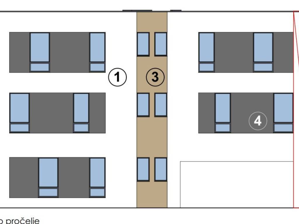 Pula - Valdebek, Zweizimmerwohnung im Bau mit einer Gesamtfläche von 65 m im Erdgeschoss. Die Wohnung hat eine Wohnfläche von 55 m und besteht aus einem Eingangsbereich, zwei Schlafzimmern, einem Wohnzimmer mit Küche und Essbereich sowie einer Terrasse. Zur Wohnung gehört ein Parkplatz und ein Garten von 70 m. In der Nähe aller Annehmlichkeiten und unweit vom Stadtzentrum von Pula.