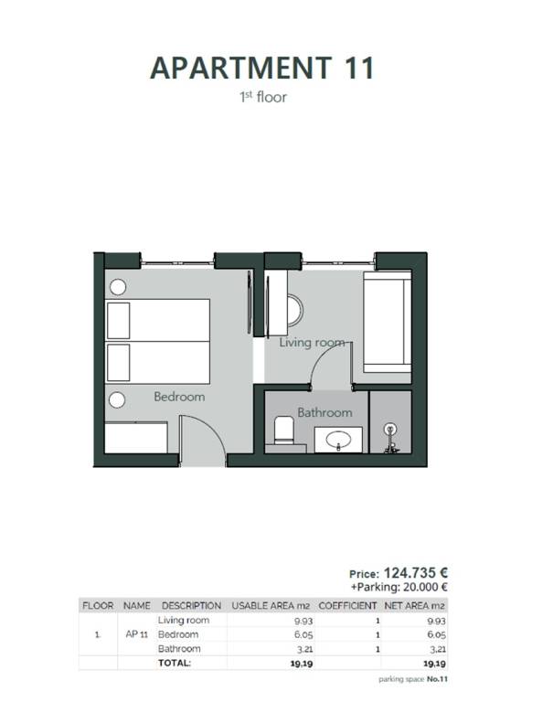 Vanjsko parkirno mjesto preko puta zgrade je moguće kupiti po cijeni od 20 000 eura.