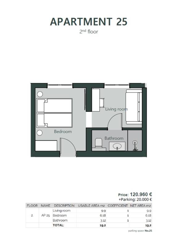 Vanjsko parkirno mjesto preko puta zgrade je moguće kupiti po cijeni od 20 000 eura.