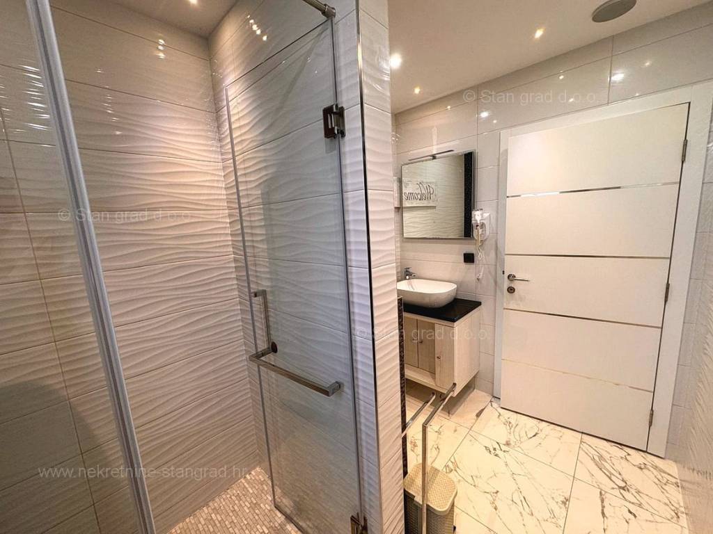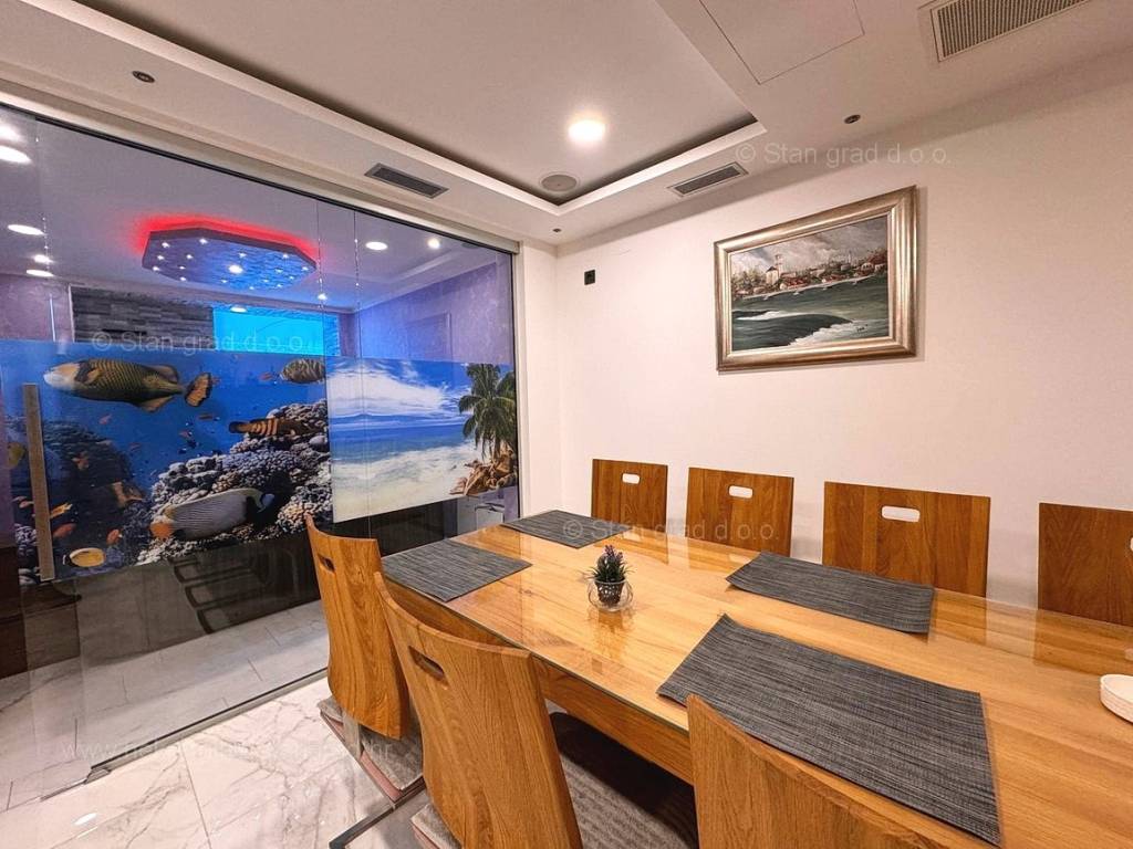 Ein sehr wertvolles und teuer gebautes Ferienhaus an der berühmten und attraktiven Adria-Touristenregion, der Insel Krk, steht in unserer Agentur in Kvarner zum Verkauf. Dieses Haus befindet sich in ruhiger Lage in der Nähe der Stadt Krk, nicht weit vom Meer entfernt. Strukturell gesehen handelt es sich um ein einstöckiges Haus mit Keller. Dieses Luxushaus erstreckt sich über insgesamt 3 Etagen. Das Haus umfasst eine Gesamtfläche von 190 m2. Das Anwesen verfügt über zwei separate Wohnungen, die jeweils über ein Wohnzimmer und eine Küche mit Esszimmer, 2 Schlafzimmer, ein Badezimmer, eine Toilette und eine Terrasse verfügen. Im äußerst gepflegten und luxuriös ausgestatteten Innenbereich des Objekts wurde ein reichhaltiger Gerätesatz der neuesten Generation verbaut. Im geräumigen Keller dieser Luxusvilla gibt es einen Raum für verschiedene Zwecke mit Whirlpool, Sauna, zwei Duschen, einer Toilette, einer kleinen Küche und einem Kamin. Der Mehrwert des gesamten Gebäudes liegt im Garten mit Swimmingpool und Liegewiese. Im Garten dieses Hauses gibt es ausreichend Platz zum Parken von zwei Autos. Darüber hinaus ist anzumerken, dass das Haus einen wunderschönen Blick auf diesen Küstenort bietet. Diese Immobilie ist Eigentum einer natürlichen Person und im Namen der Übertragung ist der Käufer des Hauses verpflichtet, eine Immobilienumsatzsteuer in Höhe von 3 % zu zahlen. Der Verkäufer dieses Hauses garantiert eine vollständige und ordnungsgemäße Dokumentation sowie eine einfache Übergabe der Immobilie an den Käufer. Kontaktieren Sie uns vertrauensvoll unter der Adresse unseres Büros auf der Insel Krk und wir werden Ihr Partner für den sicheren Kauf von Immobilien in Kvarner sein. Der Makler Stan Grad Immobilien unterstützt Sie bei der Eigentumsübertragung und den Nebenkostenabrechnungen.