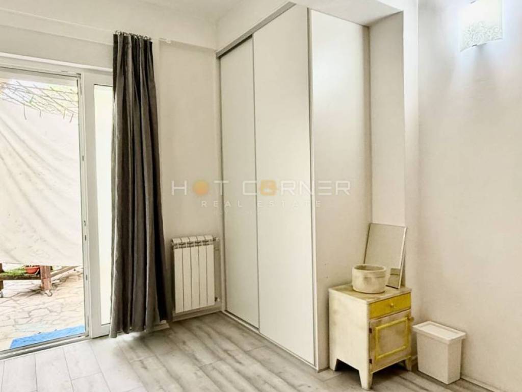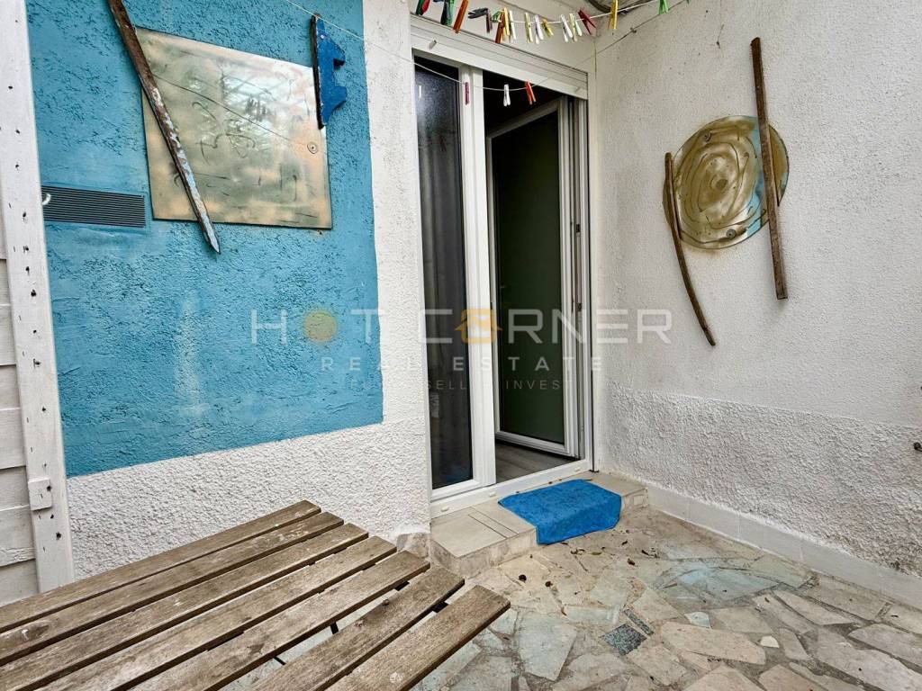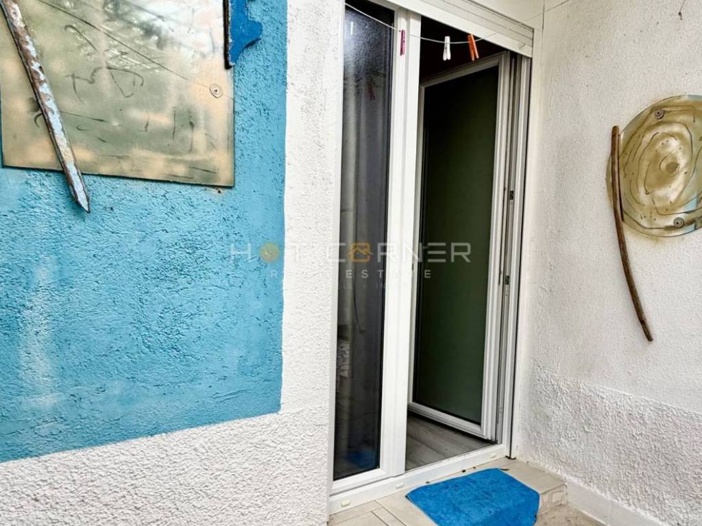 Die Wohnung befindet sich im Erdgeschoss und besteht aus einem Wohnzimmer, einer Küche, zwei Schlafzimmern, einem Badezimmer und einer kleinen Terrasse.