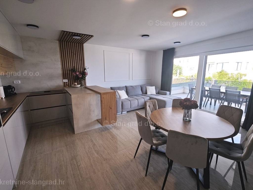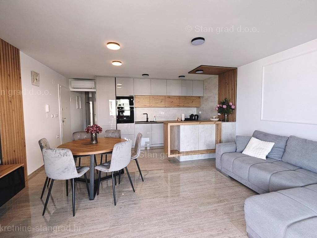 Unter den hervorragenden Immobilien, die unsere Agentur an der nördlichen Adria anbietet, sticht ein modernes Apartment in der begehrten kroatischen Küstenregion, der Insel Krk, hervor. Diese Wohnung befindet sich in einer ausgezeichneten und selten verfügbaren Lage, ganz in der Nähe des Meeres und nur wenige Gehminuten vom Zentrum von Malinska und den wichtigsten Annehmlichkeiten des Lebens entfernt. Es handelt sich um eine äußerst komfortable einstöckige Wohnung, die ihren Mietern einen schönen Wohnraum bietet. In einem sehr guten und hochwertigen Gebäude befindet sich die Wohnung im 1. Stock. Die Gesamtfläche dieser Wohnung beträgt 88 m2. Die bisherige Fläche teilt sich auf in ein Wohnzimmer und eine Küche, 3 Schlafzimmer, 2 Badezimmer, eine Toilette und eine überdachte Terrasse. Die Immobilie ist komplett mit modernen Möbeln und moderner und hochwertiger technischer Ausstattung ausgestattet. Zu beachten ist, dass der Mehrwert der Wohnung durch den angrenzenden Gartenbereich von ca. 66 m2 mit Swimmingpool gegeben ist. Dem Eigentümer der Wohnung steht ein Parkplatz zur Verfügung. Zusätzlich zu den zuvor beschriebenen Immobilien ist das Objekt sehr gut ausgerichtet und bietet von der Wohnung aus einen verlockenden Blick auf das Meer und die Naturlandschaft. Diese Wohnung ist Eigentum einer natürlichen Person und im Namen der Übertragung ist der Käufer verpflichtet, eine Immobilienumsatzsteuer in Höhe von 3 % zu zahlen. Der Verkäufer der Immobilie garantiert eine ordnungsgemäße Bau- und Eigentumsdokumentation sowie eine schnelle Übertragung der Immobilie auf den Namen des Käufers. Wir erwarten Sie in Kvarner mit der Gewissheit, dass Sie mit unserem Service zufrieden sind. Neben der Suche und Präsentation der für Sie idealen Immobilie unterstützt Sie unser Maklerbüro bei der Übertragung von Nebenkostenabrechnungen und der Anmeldung des Wohnungseigentums.