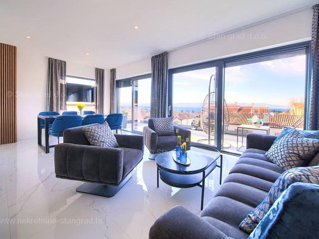 Aus dem hervorragenden Immobilienangebot der Agentur Stan Grad Immobilien sticht eine sehr schöne Wohnung in der hochwertigen und begehrten Küstendestination an der Adria, der Insel Krk, hervor. Die verfügbare Immobilie befindet sich in einer sehr attraktiven Lage in unmittelbarer Nähe des Zentrums von Malinska und bietet eine fußläufige Entfernung zum Strand. Dem Typ entsprechend handelt es sich um eine großzügige eingeschossige Wohnung, die sich über die gesamte Etage des Gebäudes erstreckt. Im Inneren des hochwertigen Gebäudes befindet sich die Wohnung im 2. Stock. Die Gesamtfläche dieser Wohnung beträgt 95 m2. Innerhalb des genannten Bereichs befinden sich 2 separate Wohnungen mit separatem Eingang. Die größere Wohnung besteht aus einer Eingangshalle, einem Wohnzimmer, einer Küche mit Esszimmer, 2 Schlafzimmern, einem Badezimmer und einer Terrasse mit Meerblick, während die kleinere Wohnung aus einem Wohnzimmer, einer Küche mit Esszimmer, einem Schlafzimmer, einem Badezimmer und einem Ausgang zur Terrasse besteht Meerblick. Der gepflegte Innenbereich der Immobilie ist mit einer Reihe hochwertiger technischer Geräte und guten Möbelstücken ausgestattet. Erwähnenswert ist auf jeden Fall, dass die beschriebene Wohnung über ein gepflegtes Grundstück mit einer Fläche von ca. 14 m2 verfügt. Dem Eigentümer der Wohnung steht ein Parkplatz zur Verfügung. Zusätzlich zu den zuvor genannten Eigenschaften verfügt die Wohnung über eine hervorragende Lage und Ausrichtung, die ihren Bewohnern einen wunderbaren freien Blick auf das Meer bietet. Diese Wohnung ist Eigentum einer natürlichen Person und im Namen der Übertragung ist der Käufer verpflichtet, eine Immobilienumsatzsteuer in Höhe von 3 % zu zahlen. Der Eigentümer garantiert eine vollständige und ordnungsgemäße technische Eigentumsdokumentation sowie eine einfache Übergabe der Wohnung an den Käufer. Kontaktieren Sie uns persönlich oder telefonisch, wir werden versuchen, alle Ihre Fragen zu beantworten. Neben einer professionellen Besichtigung und Präsentation der Immobilie und ihres rechtlichen Status unterstützen die freundlichen Mitarbeiter unserer Agentur den Käufer der Immobilie gerne bei der Eigentumsübertragung und der Übertragung der Nebenkostenabrechnungen auf seinen Namen.
