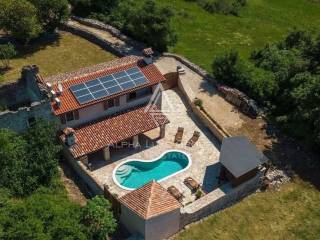 Das Erdgeschoss ist ein großer Wohnbereich mit einem Kamin aus historischem Brac-Stein, eine voll ausgestattete Küche, ein Essbereich und ein Badezimmer. Die Küche ist einzigartig und individuell gestaltet. Drei Schlafzimmer und ein Badezimmer befinden sich im zweiten Stock. Das Hauptschlafzimmer verfügt über einen Balkon mit herrlichem Blick in die Natur und einen Garten.