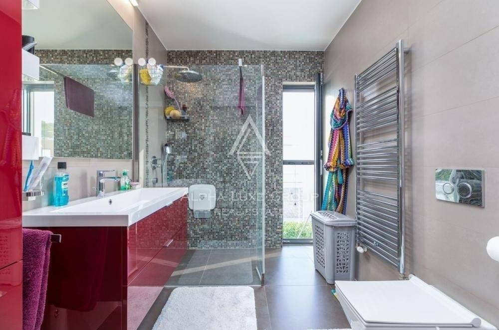 Die Innentreppe führt in den ersten Stock, wo sich vier Schlafzimmer mit jeweils eigenem Bad befinden, und vom ersten Stock führt die Treppe zu einer großzügigen Dachterrasse mit freiem Blick auf das Meer und die Brijuni-Inseln.