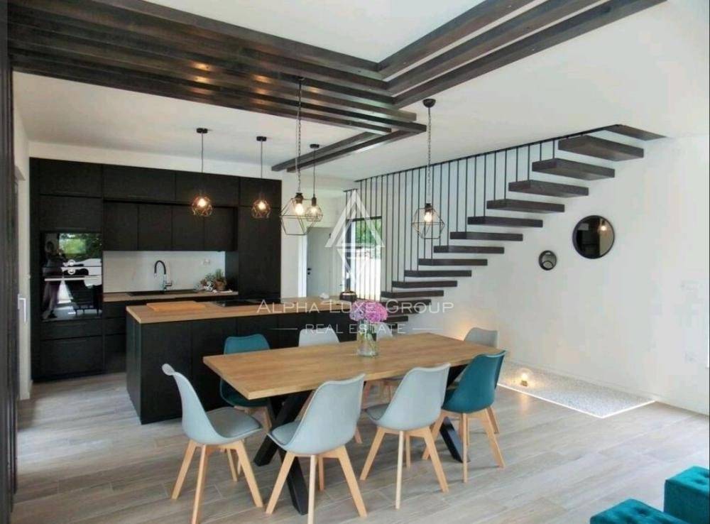 Im Erdgeschoss umfasst das Anwesen eine Waschküche mit viel Stauraum, eine Toilette und eine hochmoderne Küche mit integriertem Glaskeramikkochfeld mit eingebauter Mikrowelle, Backofen und Kühlschrank inklusive ein Gefrierschrank. Der offene Wohnbereich umfasst einen Essbereich und ein Wohnzimmer, das zur Sommerküche mit Grillmöglichkeiten, einem 30 m² großen Swimmingpool und einer Sonnenterrasse zum Entspannen führt.