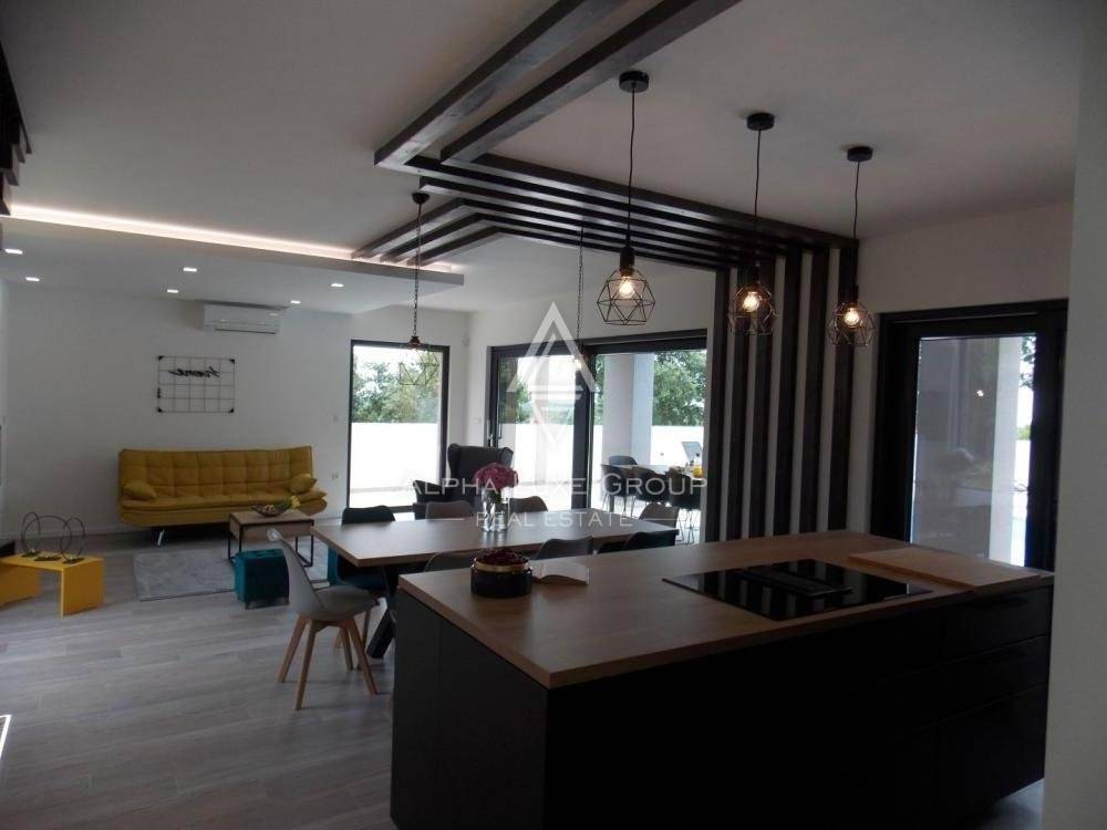 Innentreppe führt in den ersten Stock; Diese Eigenschaft besteht aus drei Schlafzimmern, die jeweils von einem Badezimmer begleitet werden. Zusätzlich verfügen zwei Schlafzimmer über eine gemeinsame Terrasse von 13 m2. Getrennt vom Haupthaus finden Sie einen 20 m² großen Maschinenraum mit viel Stauraum. Auf einem erhöhten Grundstück gelegen, bietet diese Wohnung einen atemberaubenden Blick auf Bale und Cres.
