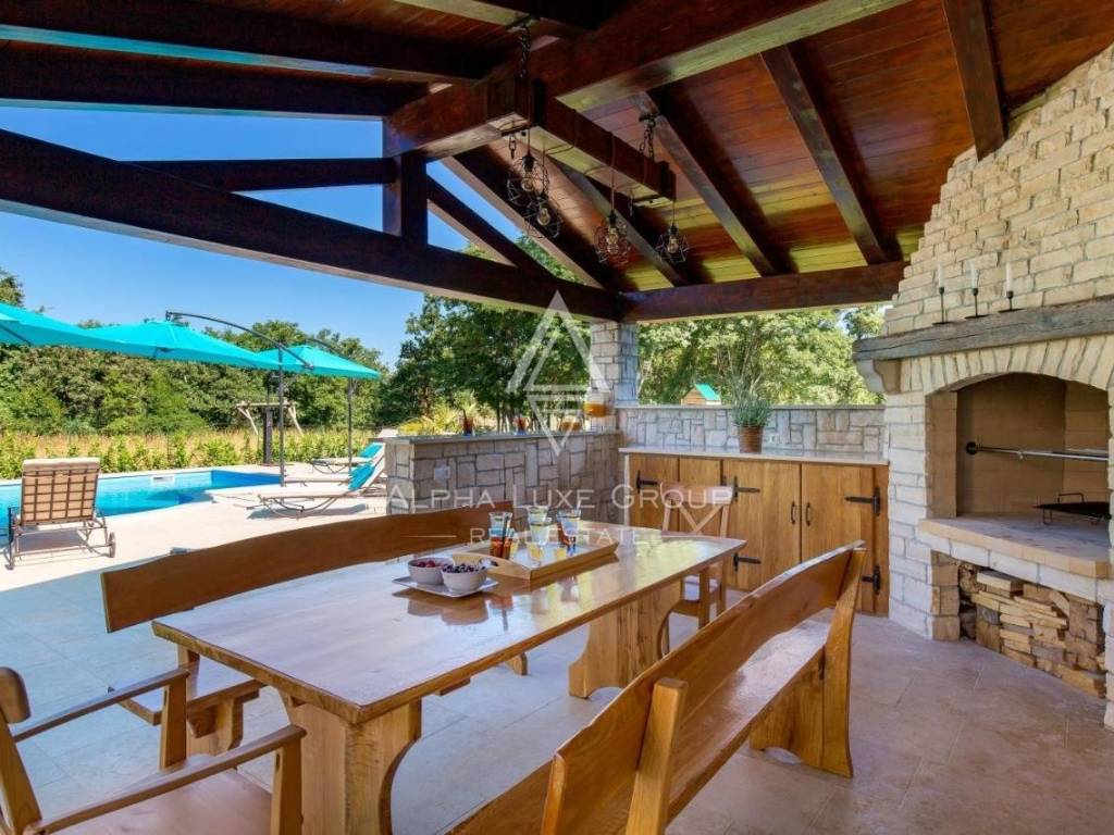 Die ALPHA LUXE GROUP verkauft eine wunderschöne Steinvilla mit großem Garten und Blick auf den Wald, Svetvinčenat, ISTRIEN