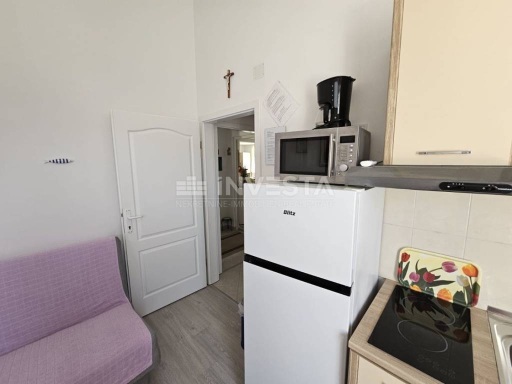 Wohnung 3 (Obergeschoss): Die dritte Wohnung, die im Obergeschoss liegt, umfasst einen Eingang, ein Wohnzimmer mit Essbereich, eine Küche, einen Vorratsraum, ein Badezimmer, ein Schlafzimmer und eine Loggia mit teilweisem Meerblick und Blick auf die Brijuni-Küste. Die Netto-Nutzfläche dieser Wohnung beträgt 63,6 m².
