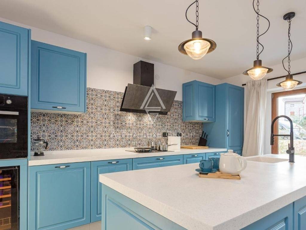 Zwei Schlafzimmer teilen sich ein gemeinsames Wohnzimmer und Bad auf der ersten Ebene. Im dritten Stock befinden sich zwei Schlafzimmer, ein Bad und eine Sauna. Das Haus verfügt über Fußbodenheizung und Wärmepumpen, Klimaanlage und eine Wärmepumpe. Eine große Sommerküche, ein schöner 42 m2 großer Überlaufpool mit Hydromassage und eine Außendusche befinden sich alle im Garten.