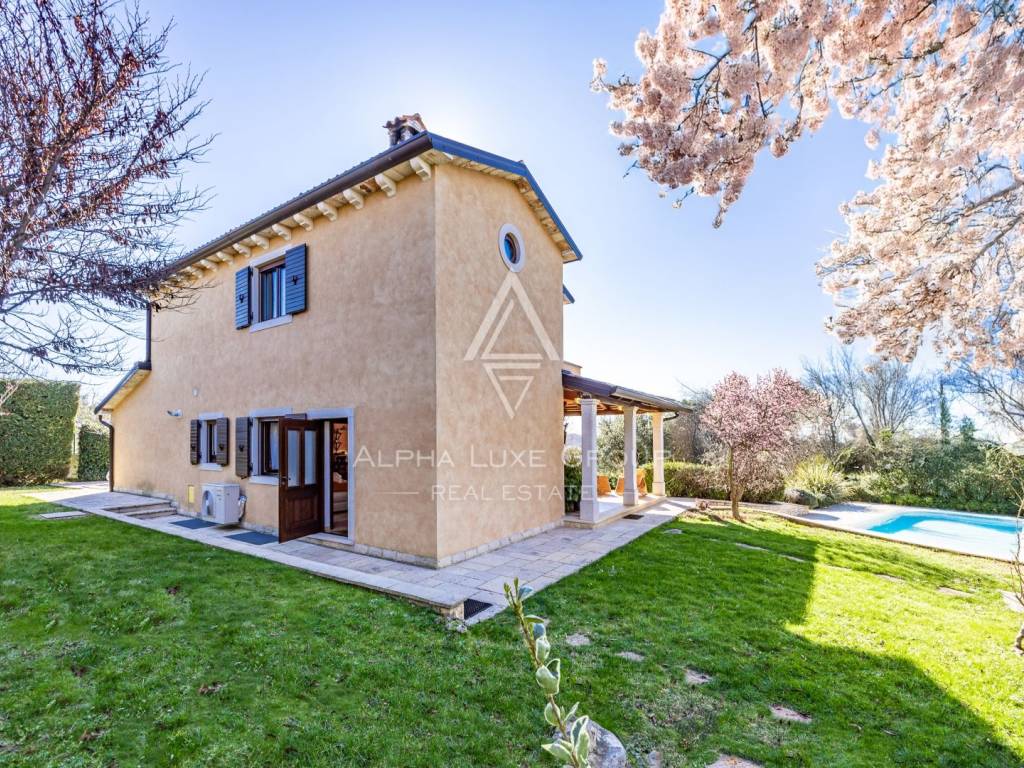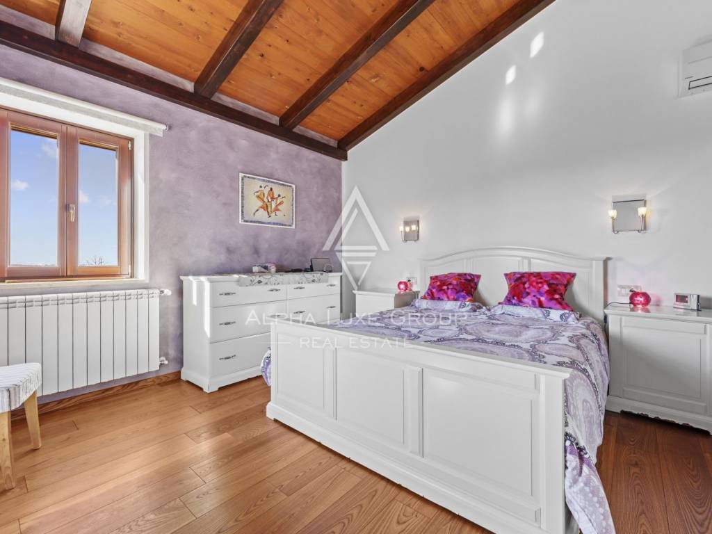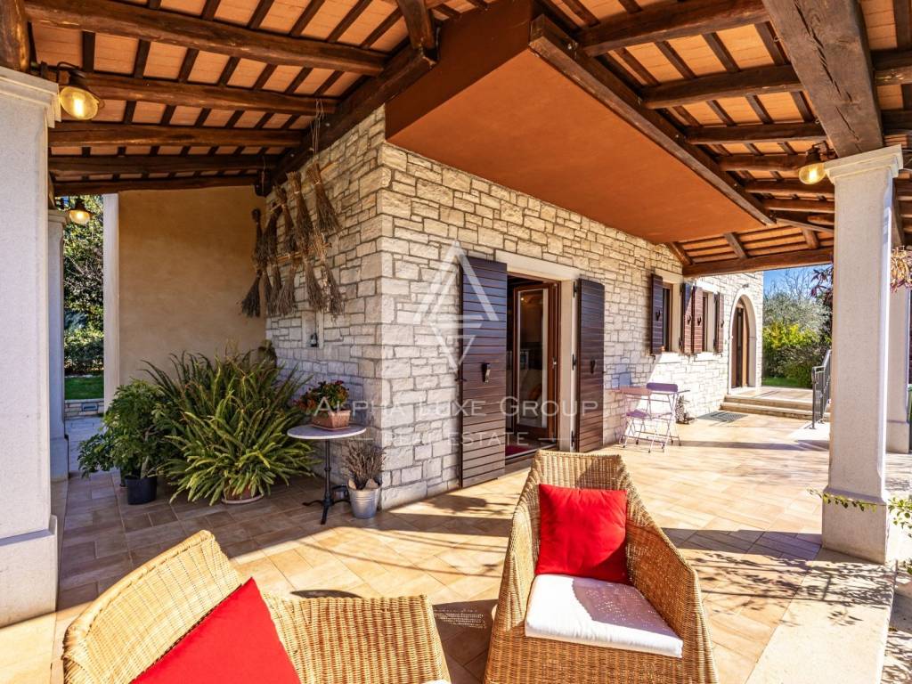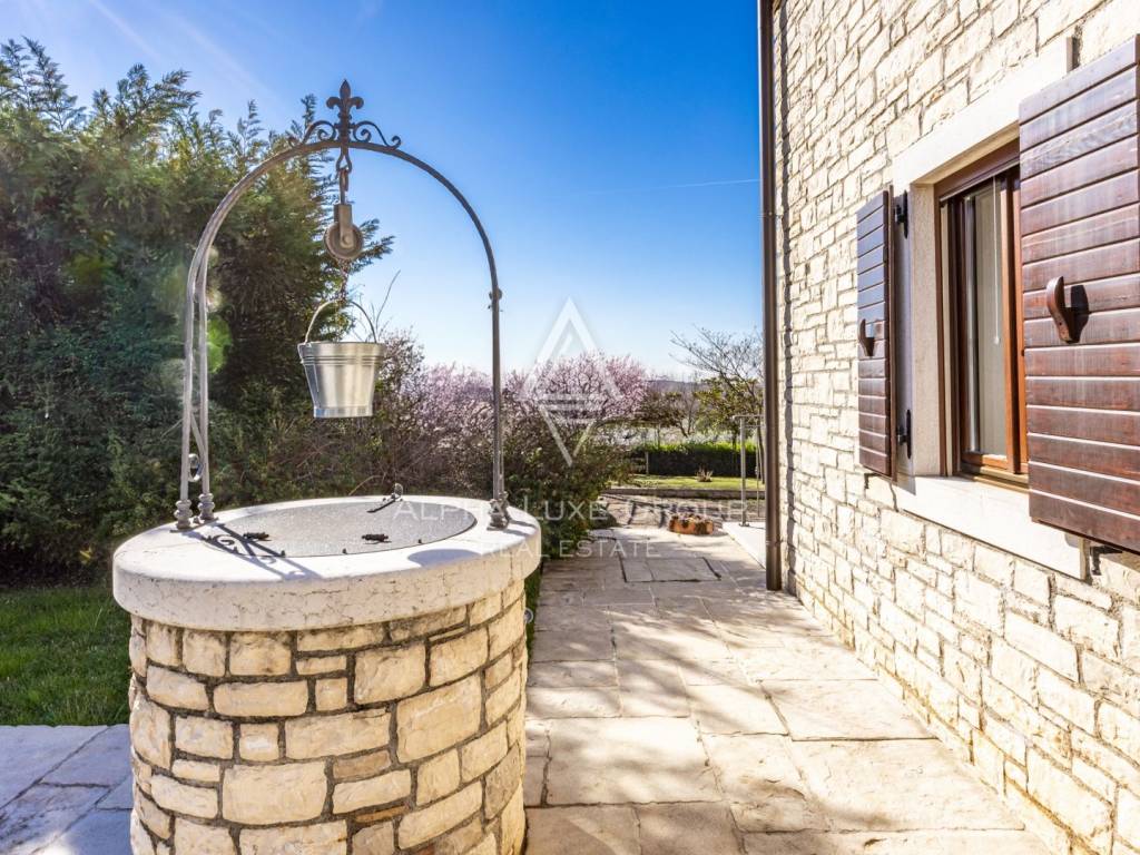 Die Villa wurde aus hochwertigen Materialien gebaut, mit Holzböden, handgefertigten Holzelementen und traditionellen Steindetails, die ihren authentischen istrischen Charakter unterstreichen. Sie ist mit einer zentralen Gasheizung, einem Kamin im Erdgeschoss und Klimaanlagen in allen Räumen ausgestattet, um das ganze Jahr über maximalen Komfort zu gewährleisten.