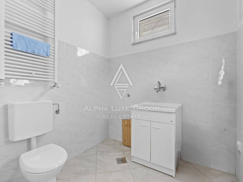 Die Villa erstreckt sich über drei Etagen mit einer Gesamtfläche von 202 m² und verfügt über eine durchdachte Raumaufteilung. Im Erdgeschoss befinden sich ein geräumiges Wohnzimmer mit offener Küche und Essbereich, ein Badezimmer und ein Flur. Vom Wohnzimmer aus gelangt man auf eine überdachte Terrasse, die in den wunderschön angelegten Garten mit Bewässerungssystem, einem 40 m² großen Pool und einem Grillbereich führt – ideal für sommerliche Zusammenkünfte.
