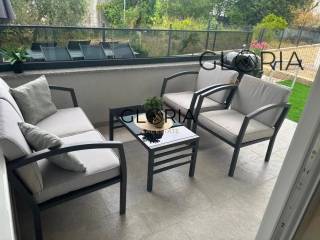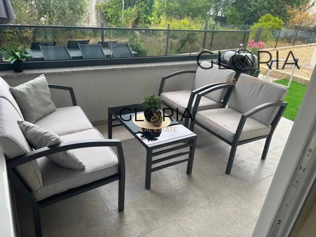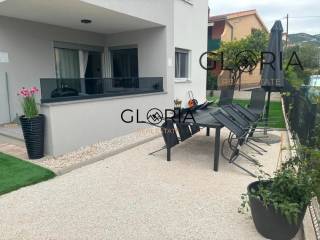 Ovaj stan odlikuje se suvremenim dizajnom i pažljivo uređenom okućnicom - vrt površine 90 m2, pružajući idealan spoj funkcionalnosti i estetike. Prostor je orijentiran prema zapadu i jugu, što omogućuje obilje prirodnog svjetla tijekom dana i ugodnu atmosferu. Stan je opremljen modernom kuhinjom s aparatima, perilicom posuđa, perilicom rublja, TV-om, krevetom i radnim stolom, što dodatno doprinosi udobnosti svakodnevnog života.