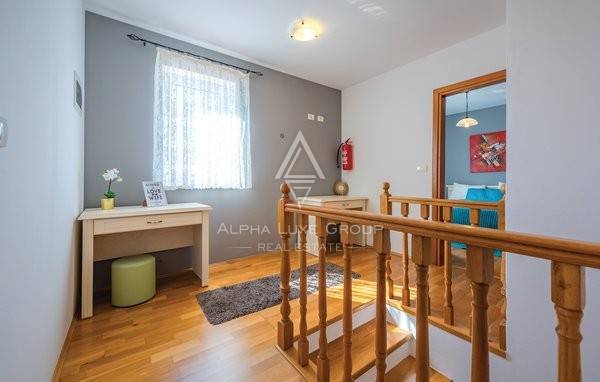 Diese elegante Doppelhaushälfte zum Verkauf in der Nähe von Umag bietet einen komfortablen Küstenlebensstil, nur 300 m vom Strand entfernt. In ruhiger Naturumgebung, umgeben von Grünflächen, vereint die Immobilie modernen Komfort mit istrischem Charme. Das Haus erstreckt sich über zwei Etagen mit insgesamt 197 m² Wohnfläche und befindet sich auf einem gepflegten 310 m² großen Grundstück.
