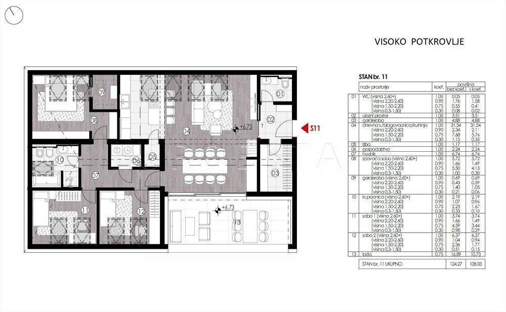 PROSTORIJE STANA: vidjeti priloženi tlocrt (S11) i popis prostorija sa površinama