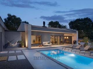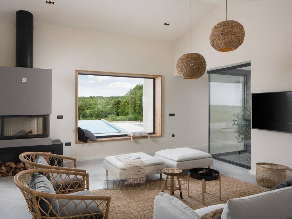 Wir verkaufen eine wunderschöne Villa, die traditionelle Elemente perfekt mit modernem Design kombiniert. Sie liegt in einer grünen und ruhigen Umgebung in der Nähe der Limbucht, 23 km vom Meer und den berühmten Touristenzielen Porec und Rovinj entfernt. Die Villa erstreckt sich über 289 m2 und besteht aus einem großen Wohnzimmer, Esszimmer und einer Küche von höchster Qualität, 4 Schlafzimmern mit eigenen Badezimmern mit Duschen, einer überdachten Außenesszimmer mit Grill, einer Sommerküche, einem Abstellraum, einer Gästetoilette und einem Wellnessraum mit einer finnischen Sauna und einem Whirlpool. Versteckte Fan-Coil-Einheiten sind die modernsten Heiz- und Kühlsysteme, die in allen Zimmern der Villa für vollständigen Komfort sorgen. Die Umgebung des Hauses ist mit einem großen Pool von 40 m2 und einer Sonnenterrasse geschmückt, ideal zum Entspannen und Genießen.