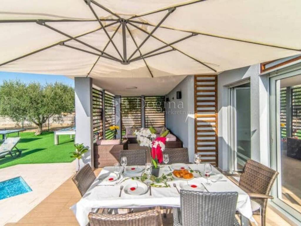 Wir präsentieren Ihnen die Villa Tammy, ein außergewöhnliches Anwesen in einzigartiger Lage in Vodnjan, einer der authentischsten Städte Istriens. Diese Villa bietet die ideale Balance zwischen Luxus, Natur und Funktionalität egal, ob Sie eine private Oase für Ihre Familie oder eine Investition mit nachgewiesener Rendite suchen. Hauptmerkmale: Villenfläche: 173 m voll ausgestattete und möblierte Fläche Grundstück: beeindruckende 1294 m mit mediterranem Flair Schlafzimmer: 3 geräumige, klimatisierte Schlafzimmer mit viel Tageslicht Pool: beheizter Pool mit angelegtem Sonnendeck perfekt für die ganzjährige Nutzung Parken: 7 private Parkplätze eine Seltenheit in dieser Immobilienkategorie Olivenhain: sorgfältig gepflegter Olivenhain in vollem Fruchtstand mit einem jährlichen Ertrag von 20-30 Litern Premium-Olivenöl