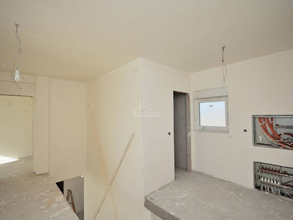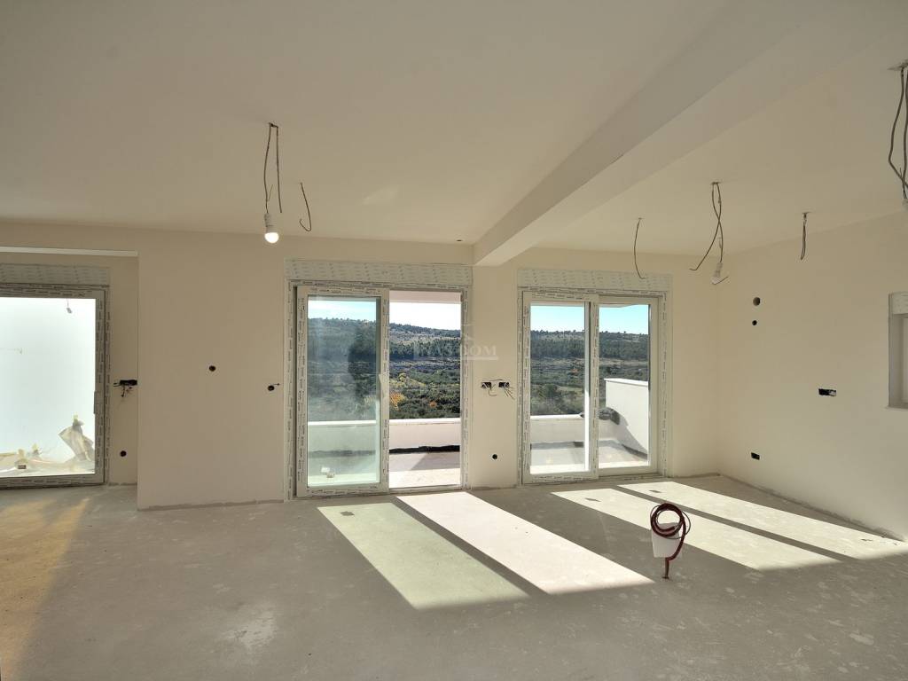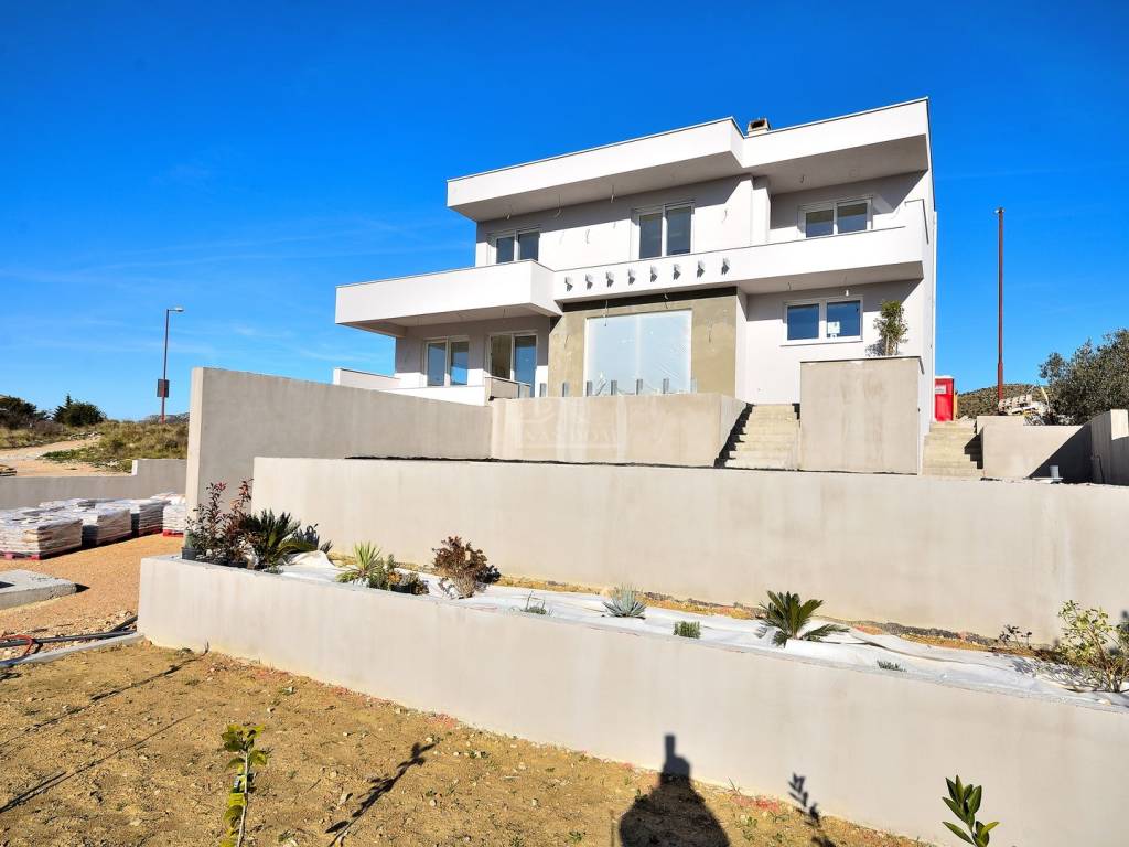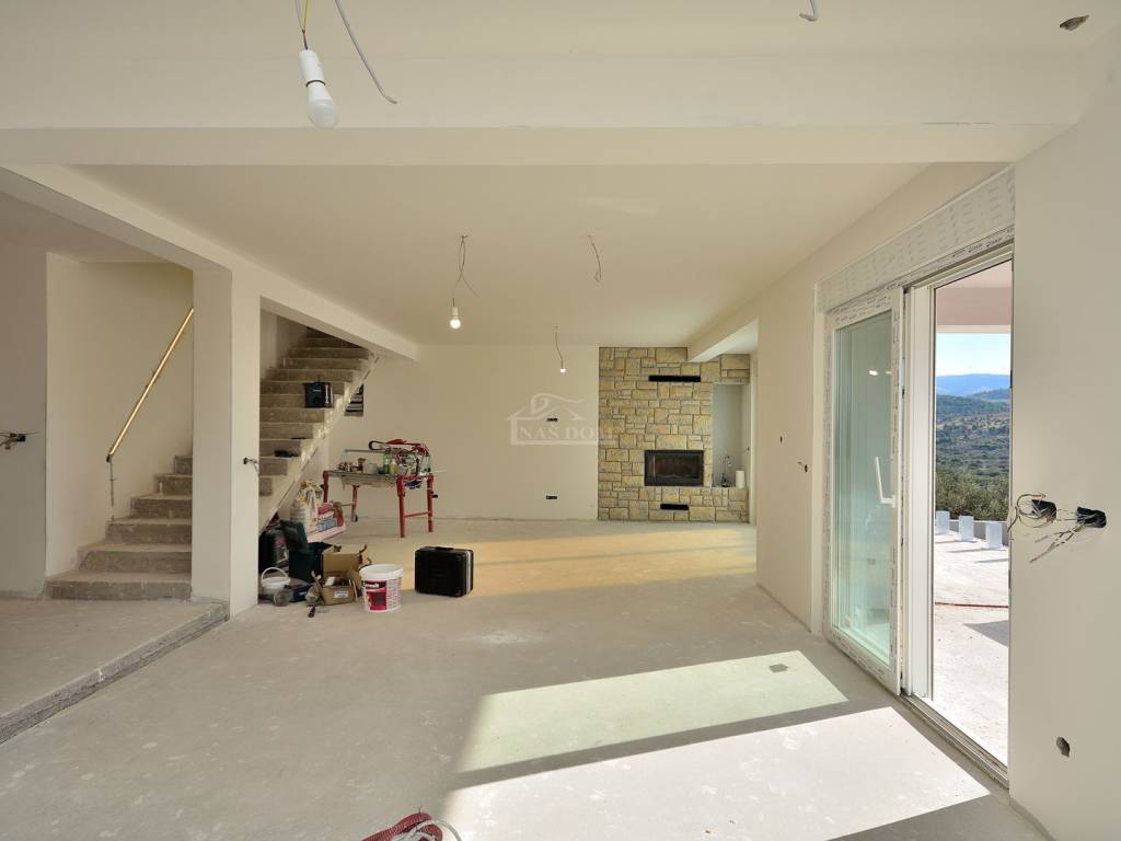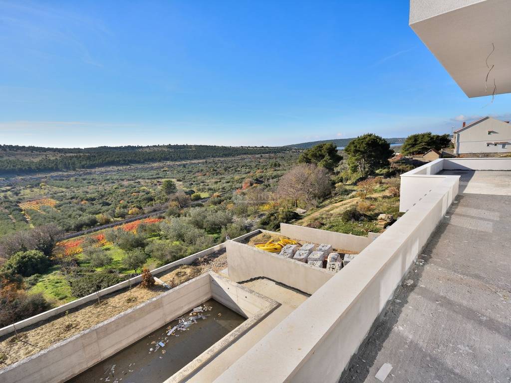 Šibenik, Donje Polje - **NEUBAU** moderner Luxusvilla mit Pool in ruhiger Lage mit Blick auf die Natur zu verkaufen. Das Haus mit einer gesamten Bruttogeschossfläche von 249m2 besteht aus drei Etagen: Untergeschoss, Erdgeschoss + Obergeschoss. Das Untergeschoss mit einer Nutzfläche von 45,6m2 besteht aus Fitnessraum, Badezimmer, Abstellraum und überdachter Terrasse mit 15,14m2. Das Erdgeschoss mit einer Nutzfläche von 92,12m2 besteht aus Eingang, Flur, WC, Waschküche, Treppenhaus, offener Küche mit Essbereich und Wohnzimmer mit Ausgang zur überdachten Terrasse von 21,36m2. Im Erdgeschoss befindet sich auch eine Garage mit 24,1 m2 sowie eine unüberdachte Terrasse von 16,57m2 und eine Außentreppe zum Garten. Über das Innentreppenhaus gelangt man in das Obergeschoss mit einer Nutzfläche von 80,78m2, das aus Flur, Badezimmer, Master-Schlafzimmer mit Ankleide und eigenem Bad sowie zwei Schlafzimmern besteht. Alle Zimmer haben Zugang zur Terrasse, bestehend aus einem überdachten Teil von 17,95m2 und einem unüberdachten Teil von 33,13m2.