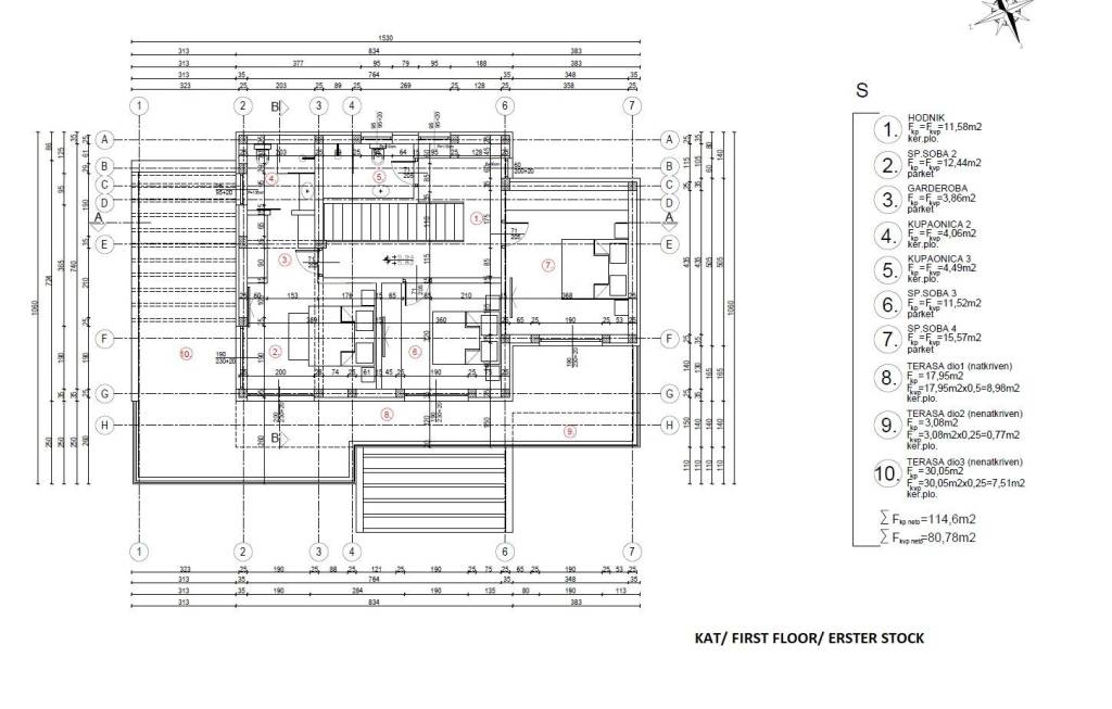 Das Haus wird derzeit auf einem Grundstück mit einer Gesamtgröße von 642m2 gebaut und wird nach den neuesten Baustandards ausgestattet sein. Zur Ausstattung gehören: