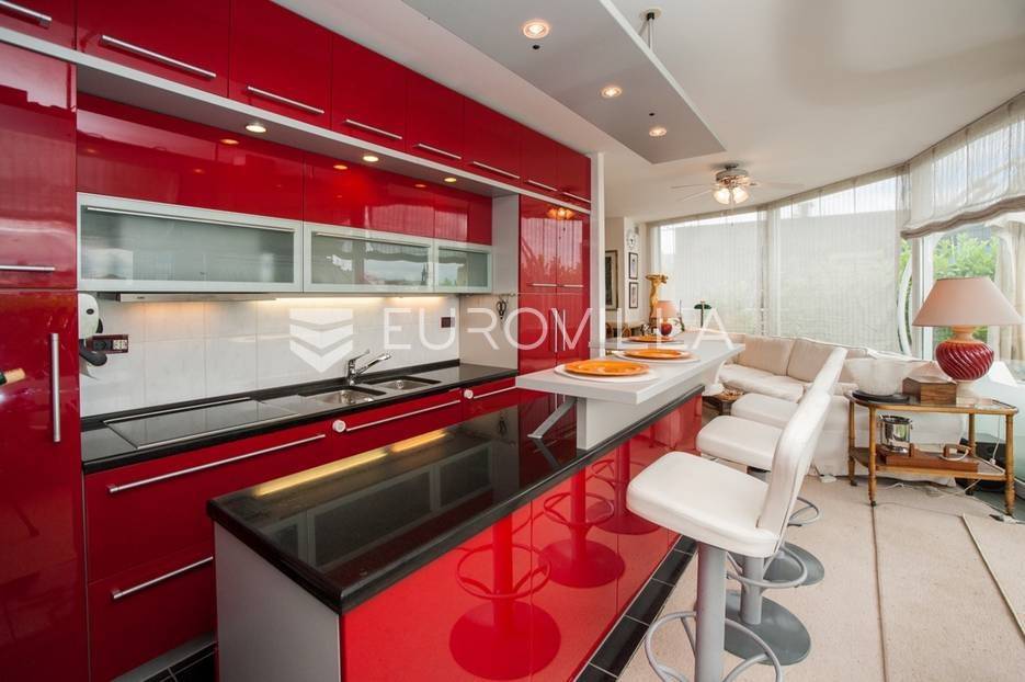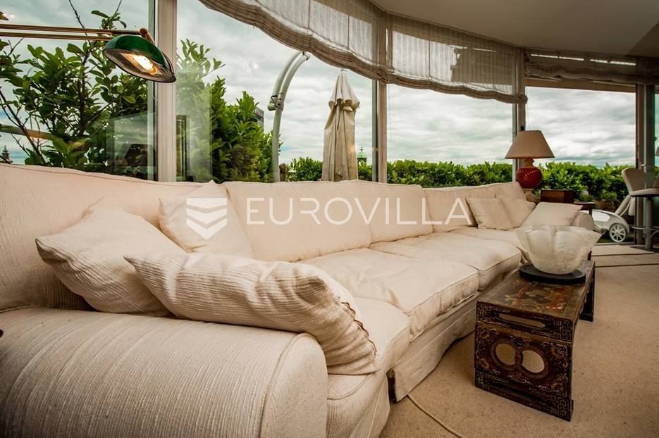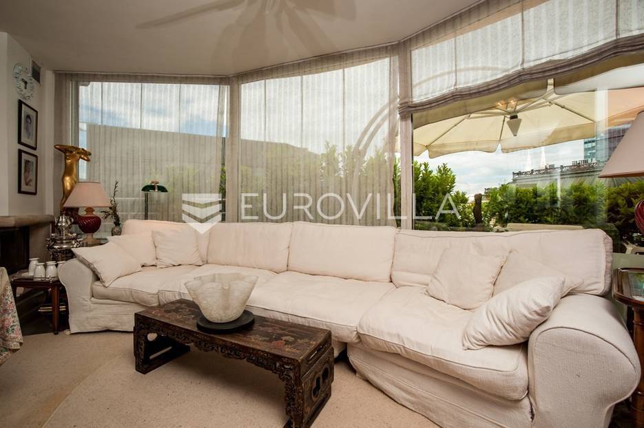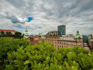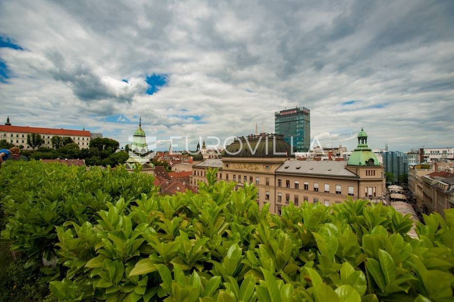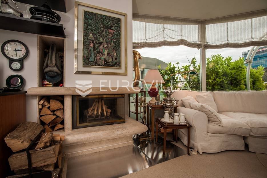 Cvjetni trg, luksuzan dvosoban penthouse zatvorene površine 90m2 + terasa cca. 50m2. Ukupno NKP cca. 110m2. Izuzetno kvalitetna gradnja, odlična izolacija. Zgrada ima lift. Stan ima pogled na Cvjetni i Bogovićevu. U neposrednoj blizini nalaze se svi bitniji sadržaji za život.Opis: prostrani dnevni boravak s kaminom, kuhinja, ogromna spavaće sobe, kupaonice s Jacuzzi kadom, prostrana terasa s vanjskim roštiljom i tušem. Luksuzno namješten i opremljen. Klimatiziran, etažno plinsko grijanje.Ostale informacije na upit.
